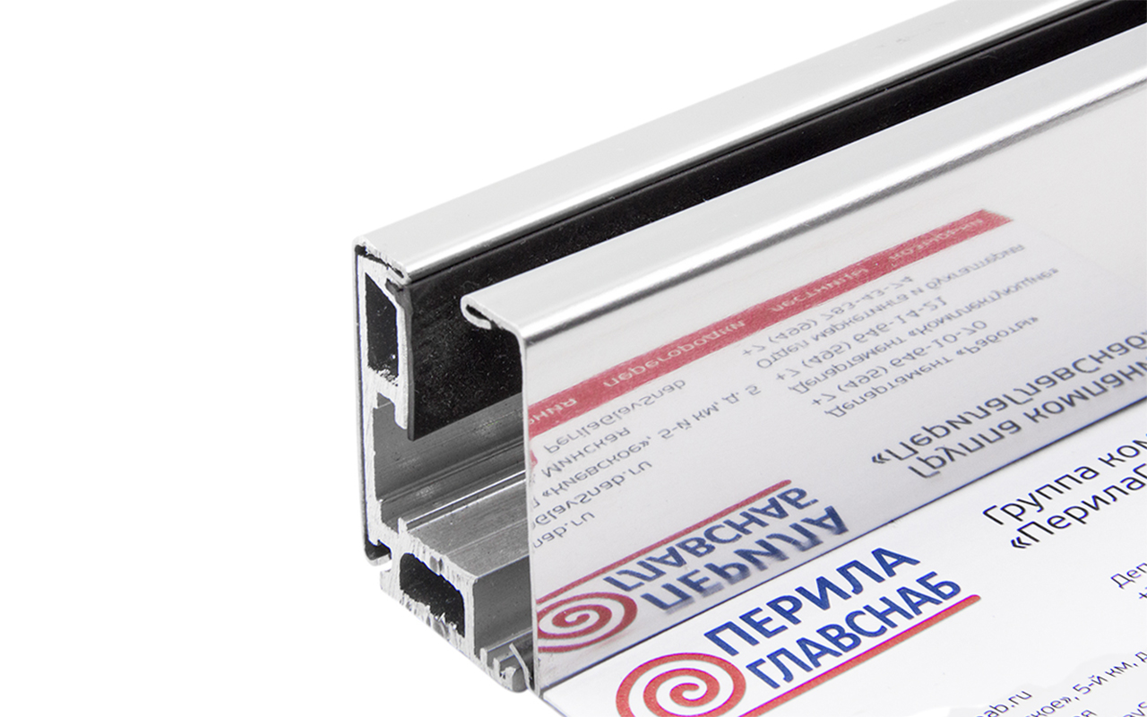 Основной профиль - алюминиевые хлысты. Они оборудованы специальными отверстиями для крепления зажимов. Для удобства, надежности и защиты стекла от порчи этот элемент дополнен резиновым уплотнителем.