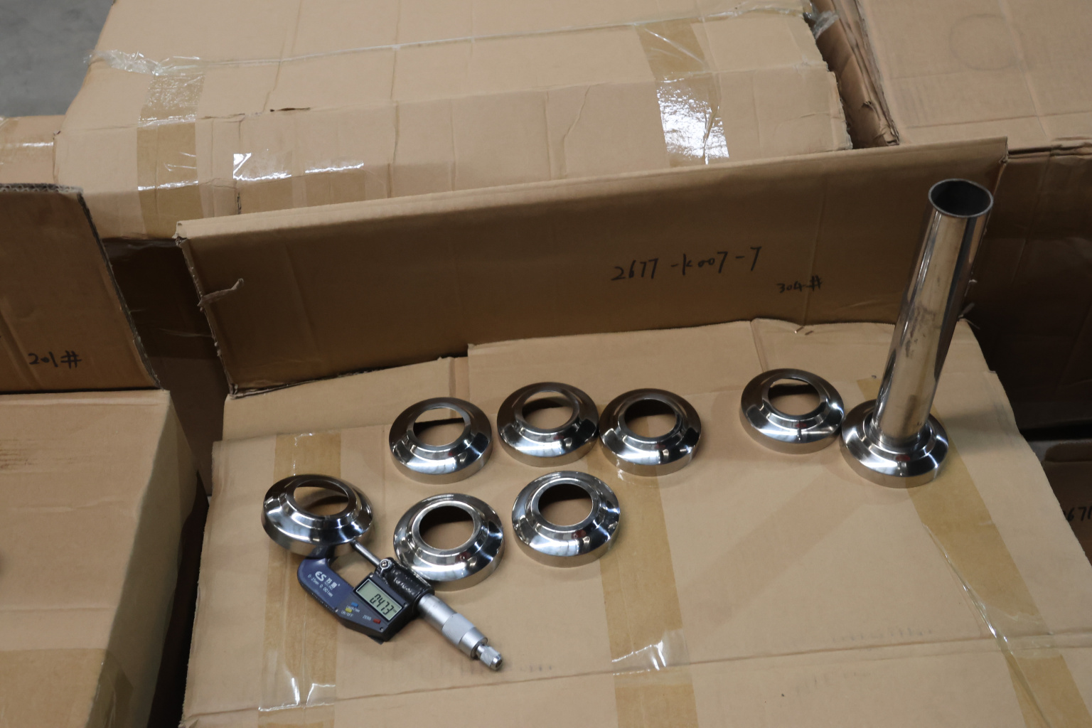 Низ стойки фигурный диаметром 38.1, Ø78х0.5 мм. Деталь полированная. Марка стали - AISI 304 #400