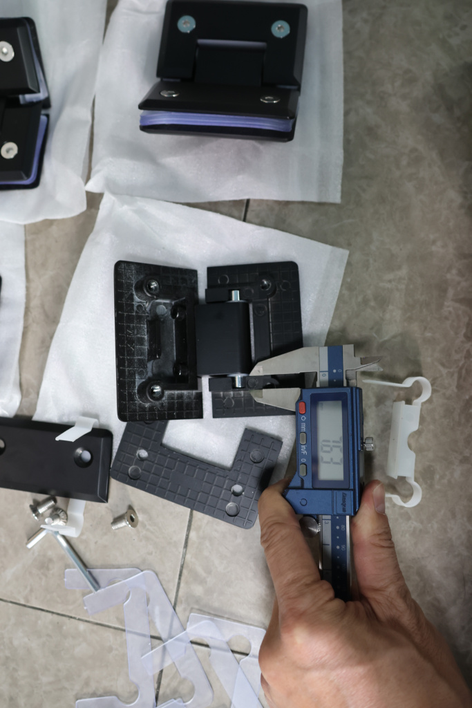 Петля стекло-стекло крепится с обеих сторон на стеклянные поверхности, плотно прижимаясь к ним своими металлическими зажимами.
