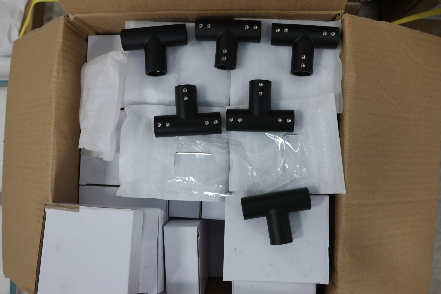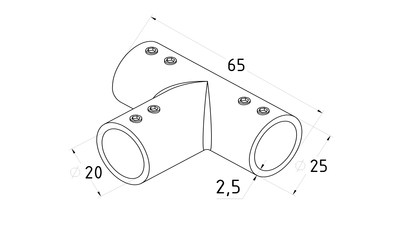 Труба вставляется в тройник со всех сторон и фиксируется с помощью шестигранника
