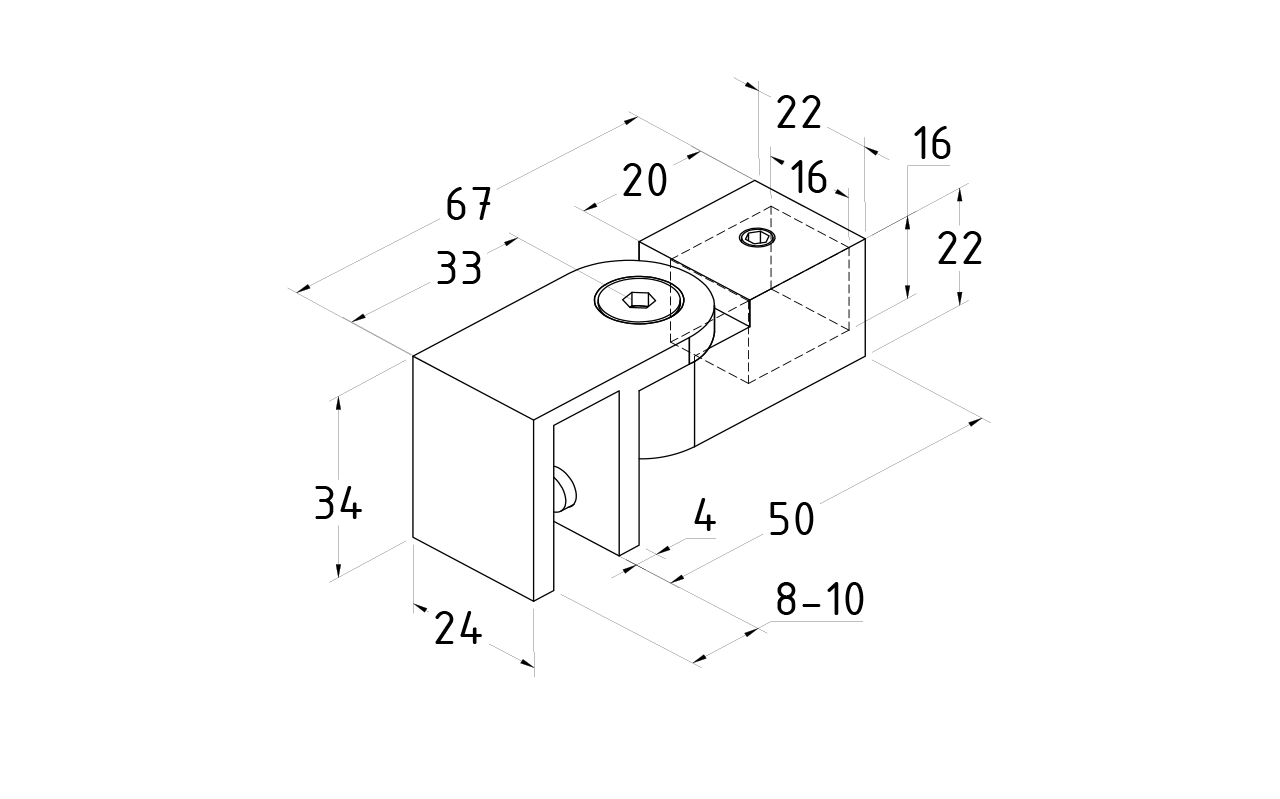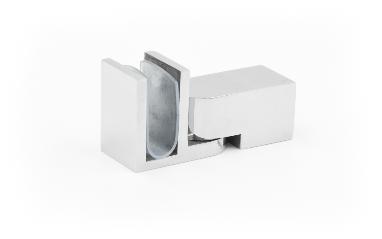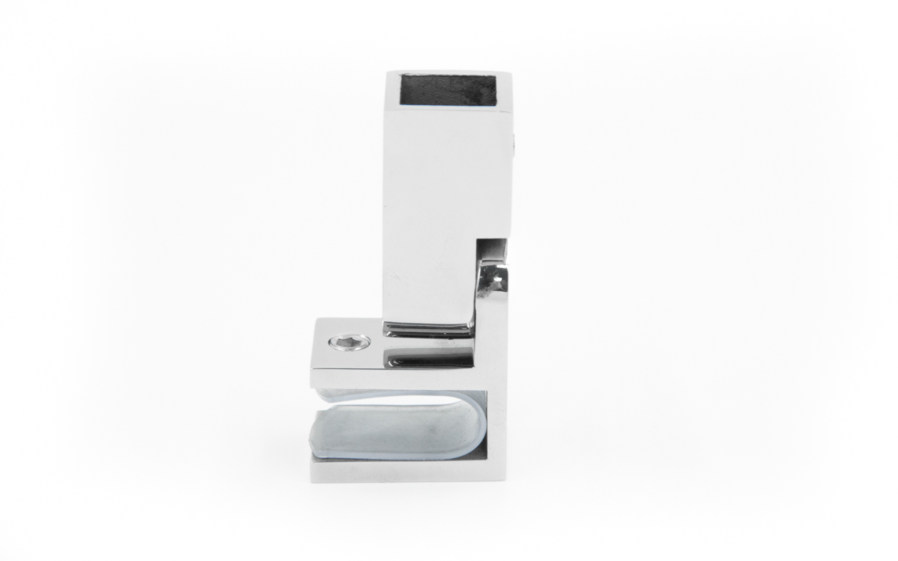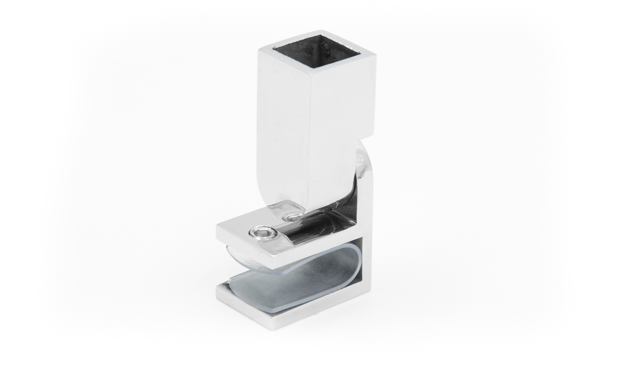 Коннектор предназначен для крепления трубы 15х15 мм к стеклу под произвольным углом при монтаже штанг верхней обвязки душевых кабин.