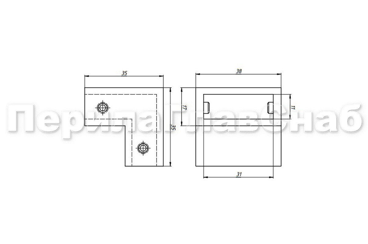 Соединитель предназначен для соединения труб 30х10 под углом 90º в вертикальной ориентации. Для монтажа верхней обвязки душевых кабин, угловых раздвижных душевых перегородок.