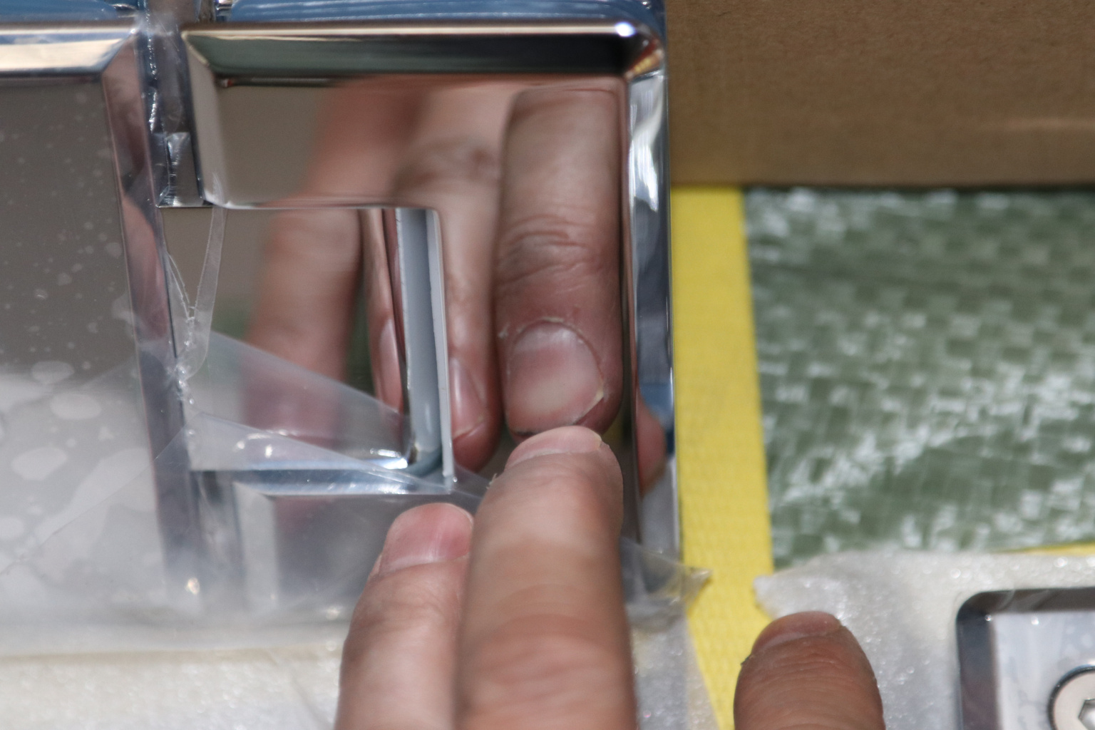 Крепление предусмотрено с двух сторон на 4 винта со шляпками заподлицо (по 2 винта на каждую сторону). Размер одной стороны петли составляет 90х55 мм.