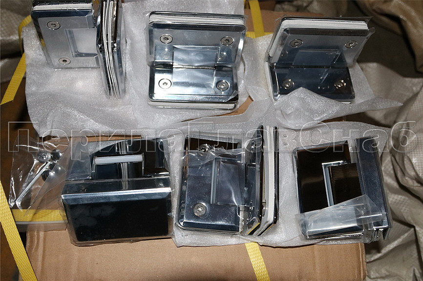 Функция самозакрывание, поворот в обе стороны. Петля стекло-стекло крепится с обеих сторон на стеклянные поверхности, плотно прижимаясь к ним своими металлическими зажимами.