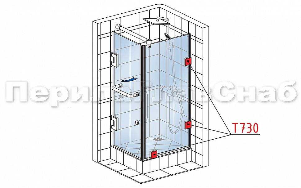 Коннектор для душевой кабины стена-стекло 45х45 мм латунь-хром, полированный t730 PC
