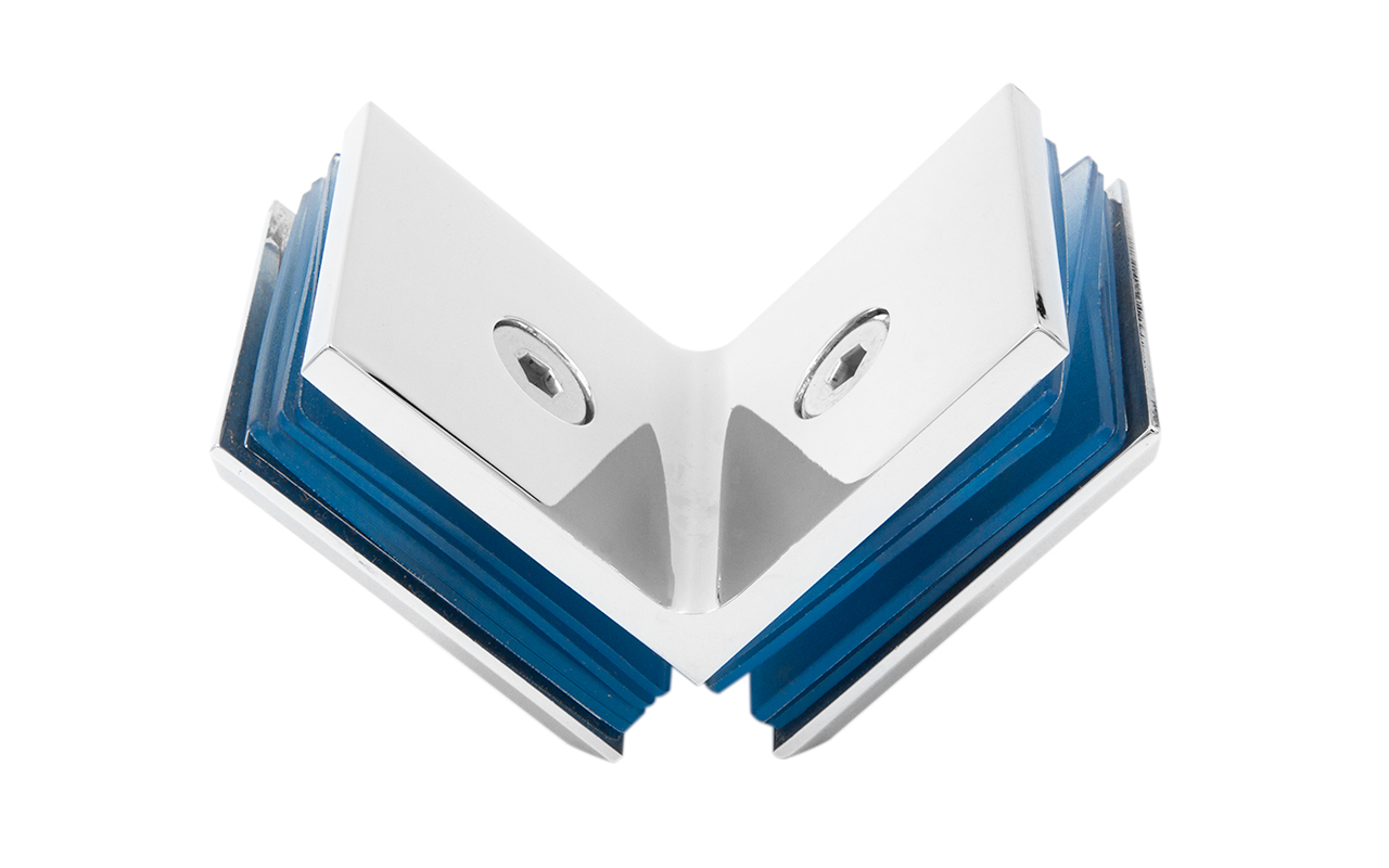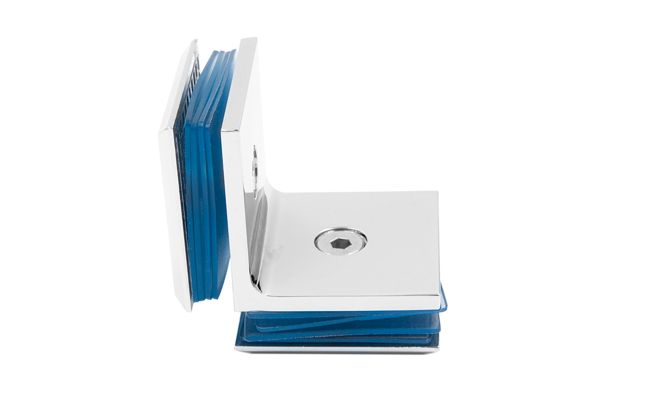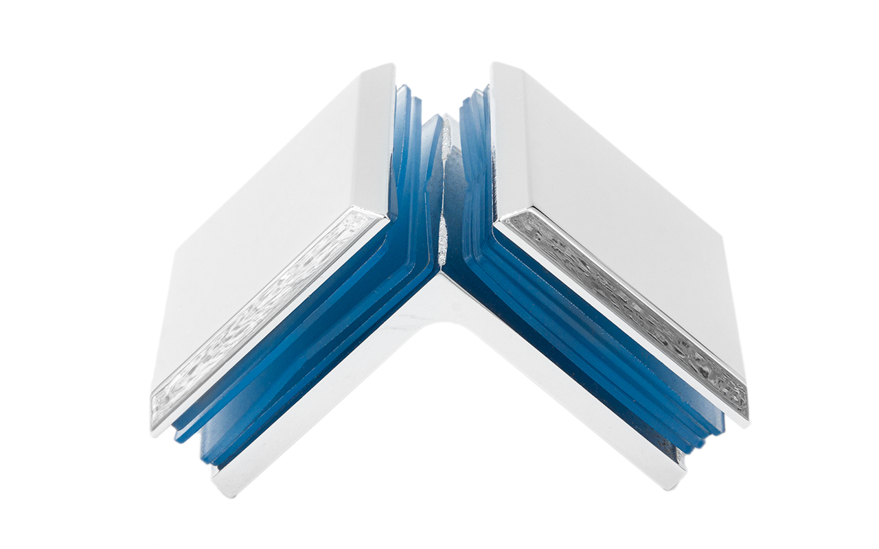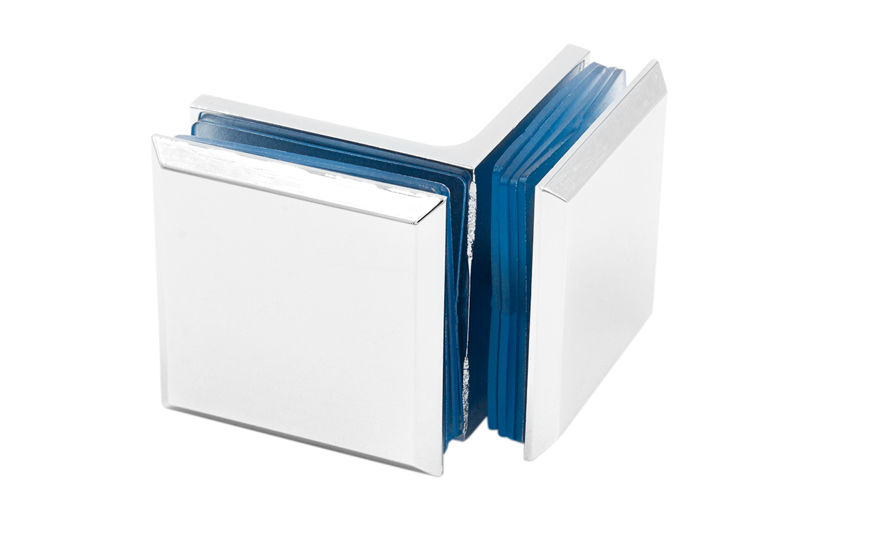 Коннектор для душевой кабины, стекло-стекло 90°, 45х45 мм. Материал - латунь-хром, поверхность - полированная