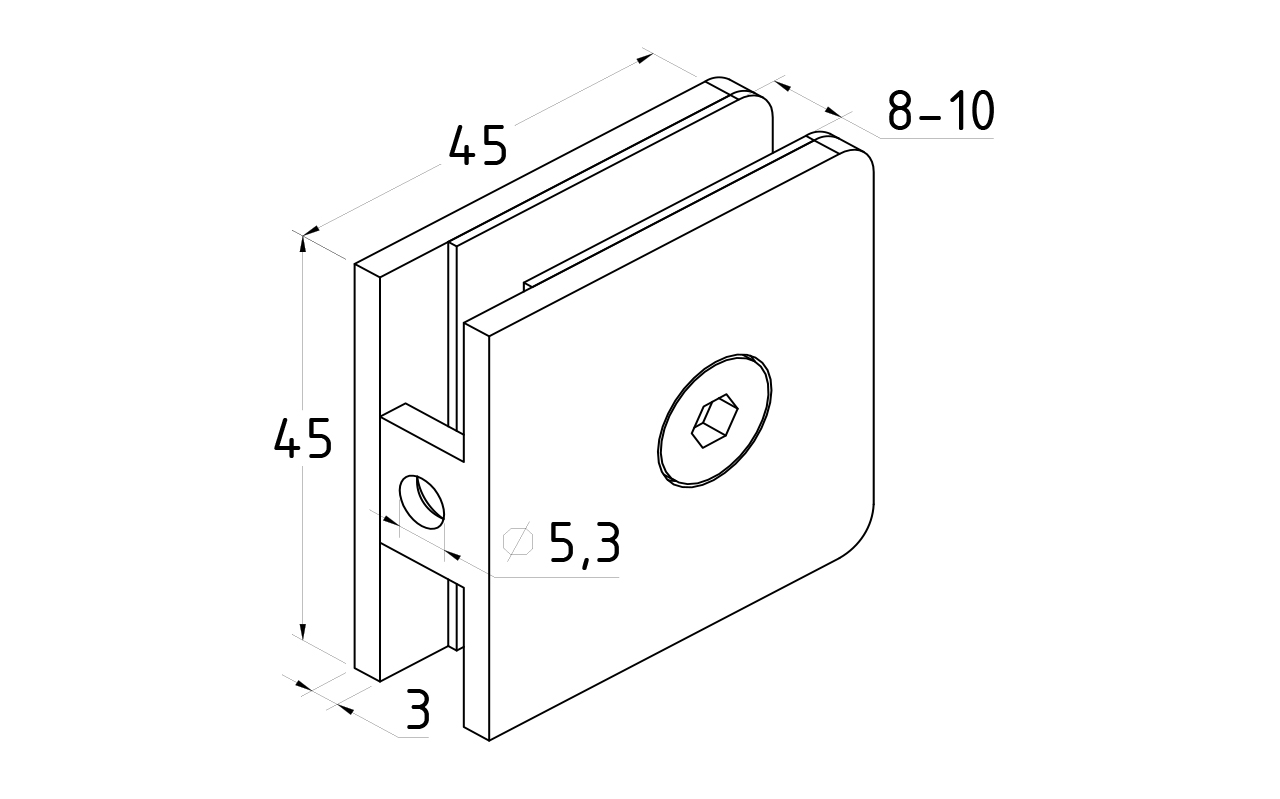 Коннектор для душевой стена-стекло 45х45 мм, нержавеющая сталь AISI 304, шлифованная t720 SSS