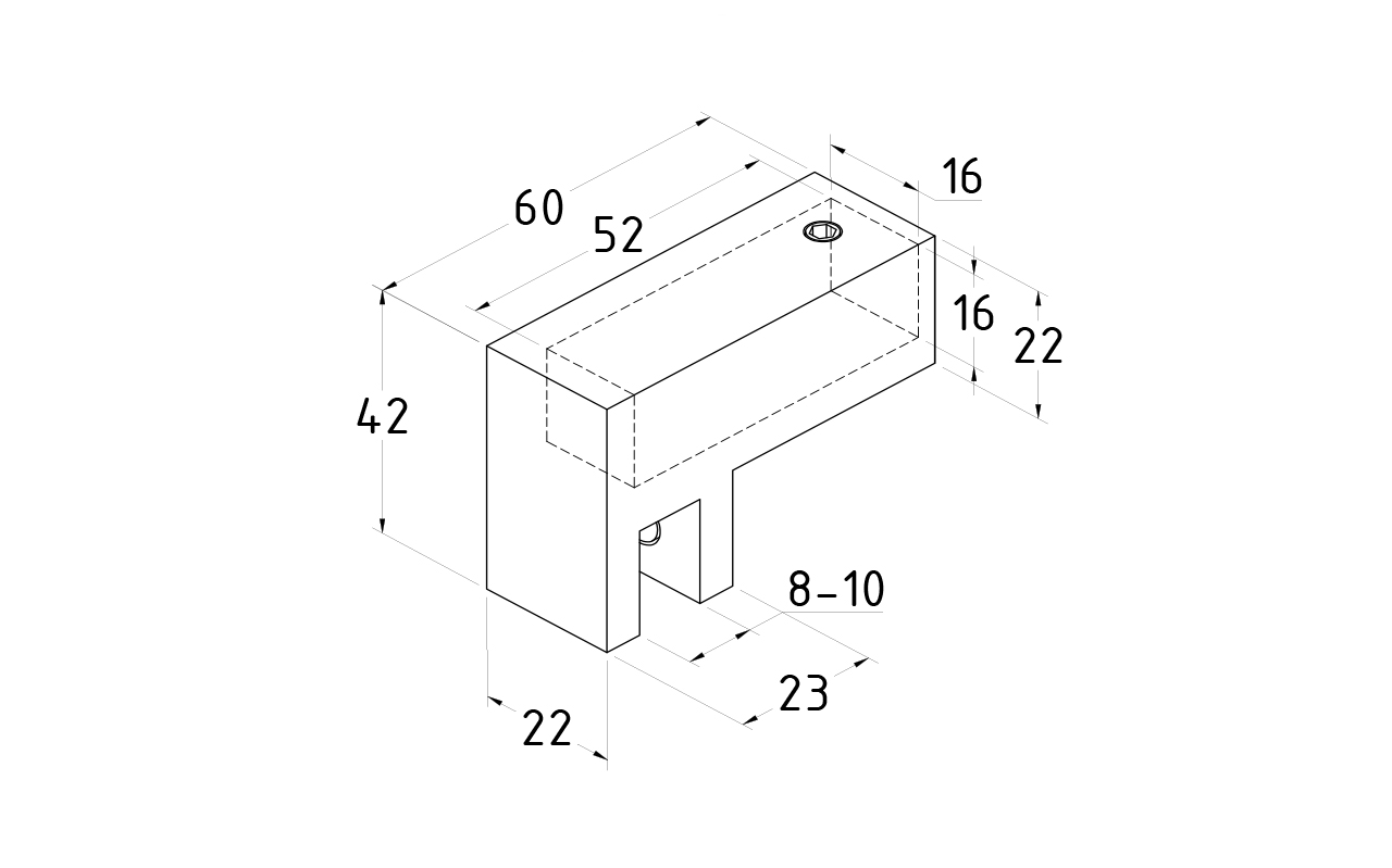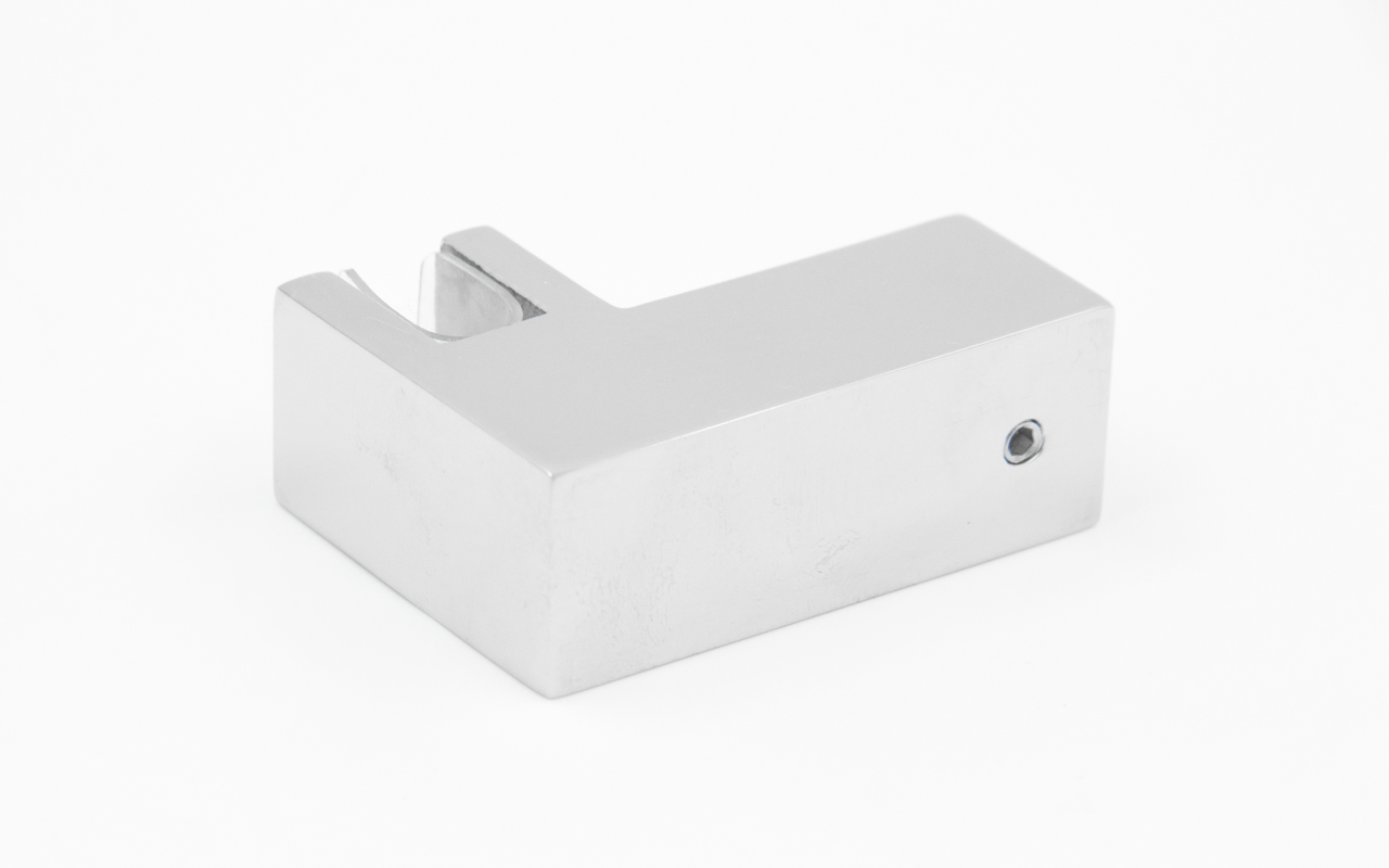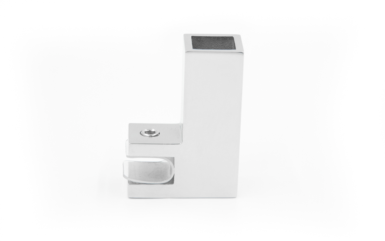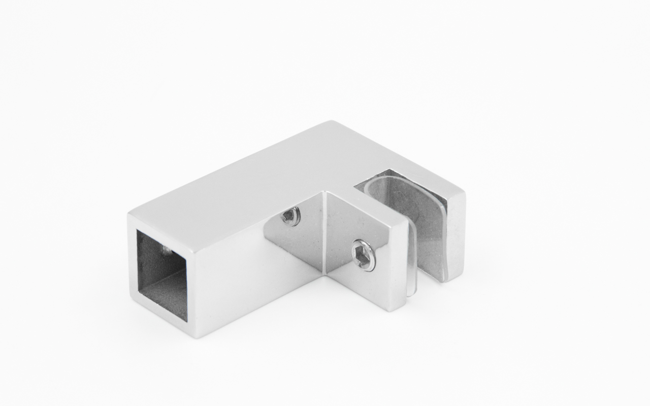 Коннектор предназначен для крепления трубы 15х15 мм к стеклу под углом 90º при монтаже штанг верхней обвязки душевых кабин.
