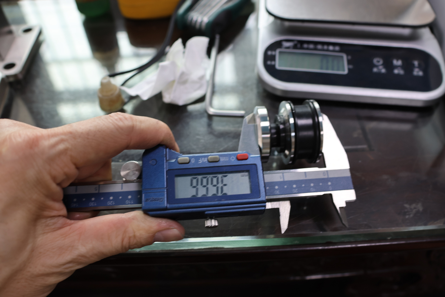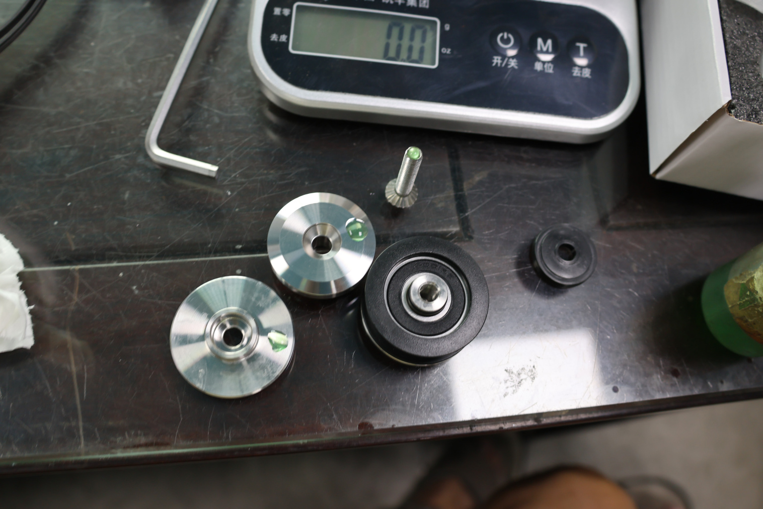 На дверь устанавливаем верхние ролики из комплекта в подготовленные вырезы в стекле. Сверху накидываем дверь и затягиваем ролики.