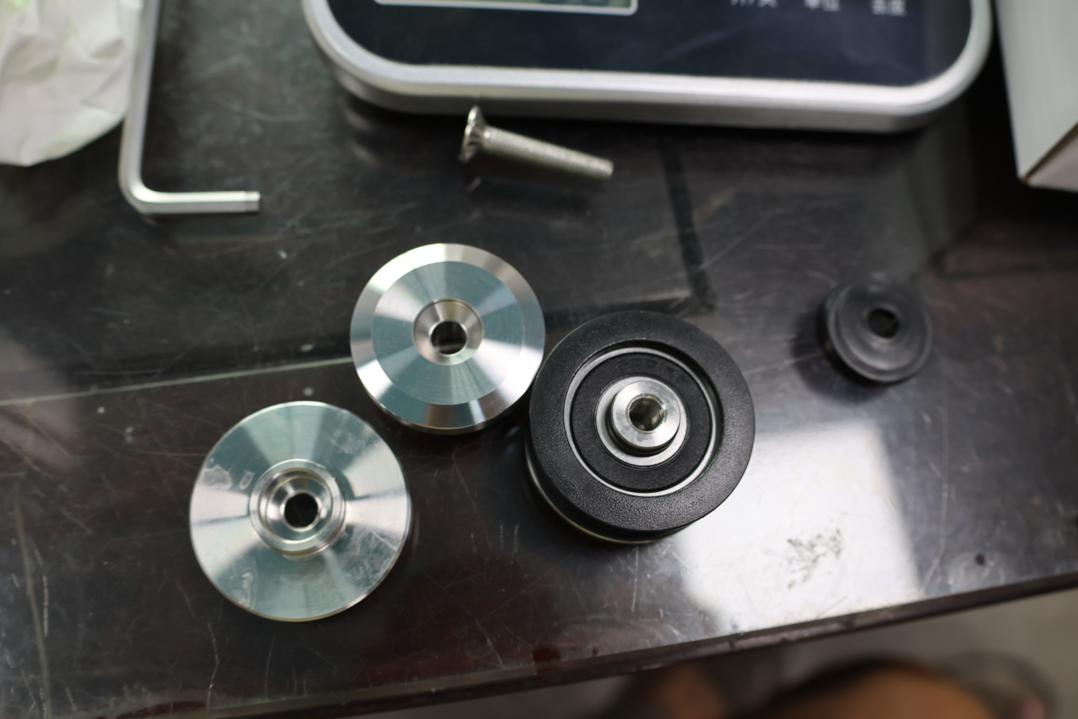 Устанавливаем ручку из комплекта, нижние ролики на дверь.