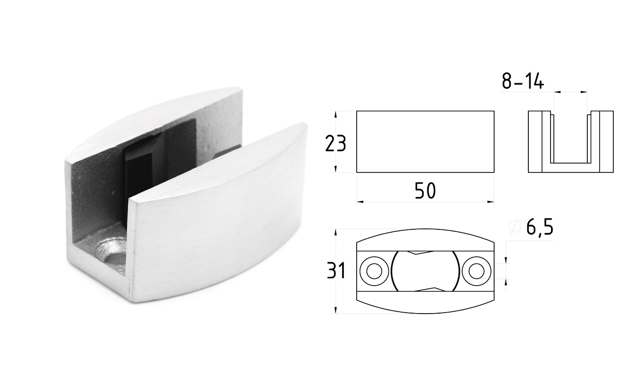 Крепление трека к стеклу AISI 304 шлифованное t449 SSS