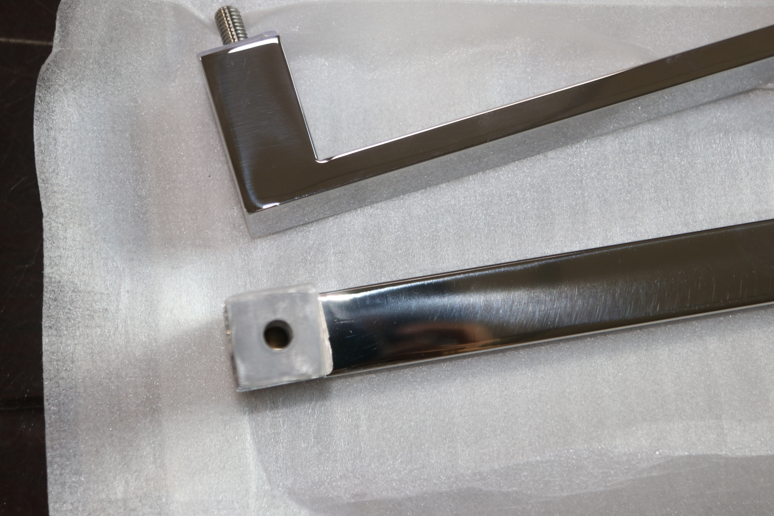 Ручки ПерилаГлавСнаб сделаны из высококачественной нержавеющей стали марки AISI 304 ( 08Х18H10 ) , что дает возможность установки , как внутри так и снаружи помещений. Толщина стенки составляет 1,0 мм ( обычно это значение не привышает 0.6-0.7 мм ), что обеспечивает защиту от механических повреждений . Винт крепления имеет полную резьбу это позволяет установить ручку на любую дверь толщиной от 8 мм до 12 мм. В комплекте используются прокладки-шайбы из эластичного и морозостойкого ПВХ.