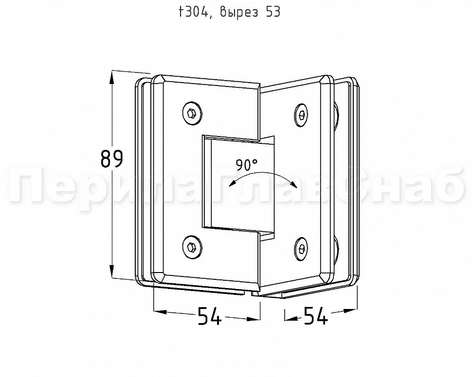 Петля для душевой кабины стекло-стекло 90°, 90*55, материал - нержавеющая сталь AISI 304, полированная поверхность