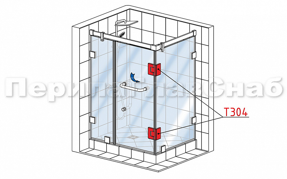 Комплект раздвижной системы для стеклянной душевой, нержавеющая сталь AISI 304, полированная t401 PSS купить в Тюмени