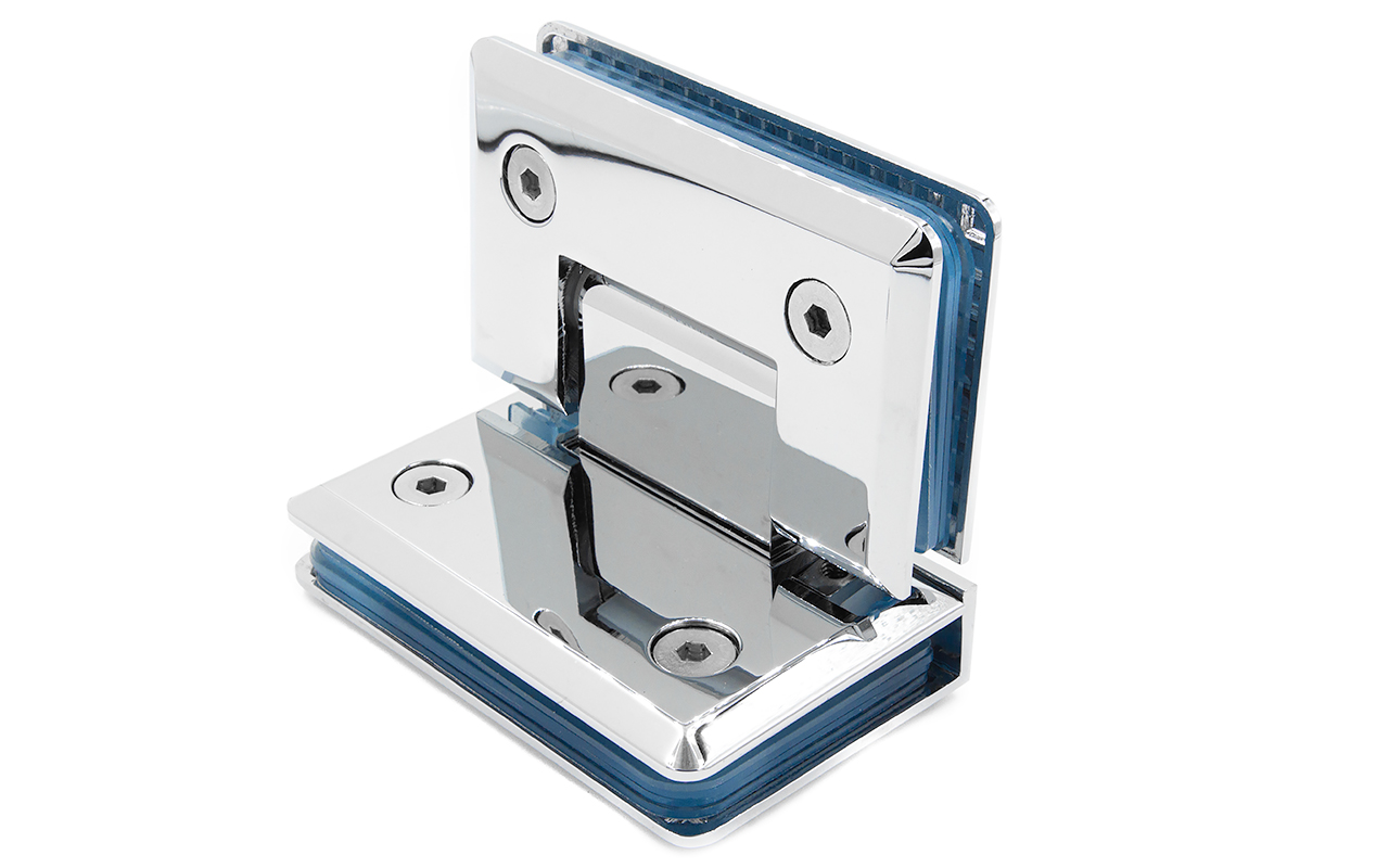 Материалы из нержавеющей стали отличаются надежностью стыковки стеклянных полотен, а также высокой стойкостью к коррозии. Именно последнее качество лежит в основе долговечной эксплуатации. Представленный здесь вид петель имеет конфигурацию стекло-стекло и позволяет закрывать двери душевых кабин в диапазоне с 250 до 900. В них реализована функция доводчика, что делает их эксплуатацию эргономичной. Прокладка обеспечивает место стыковки двух полотен из стекла не только герметичностью, но и поглощением вибраций.