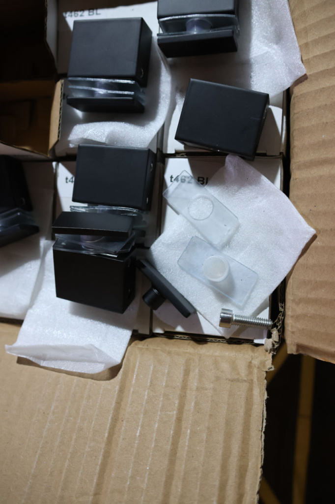 Крепится к стеклу через отверстие 14 мм, соединительные прокладки препятствуют прямому контакту металла и стекла, что способствует сохранению целостности перегородки. Габаритные размеры прямоугольной штанги составляют 30х10 мм