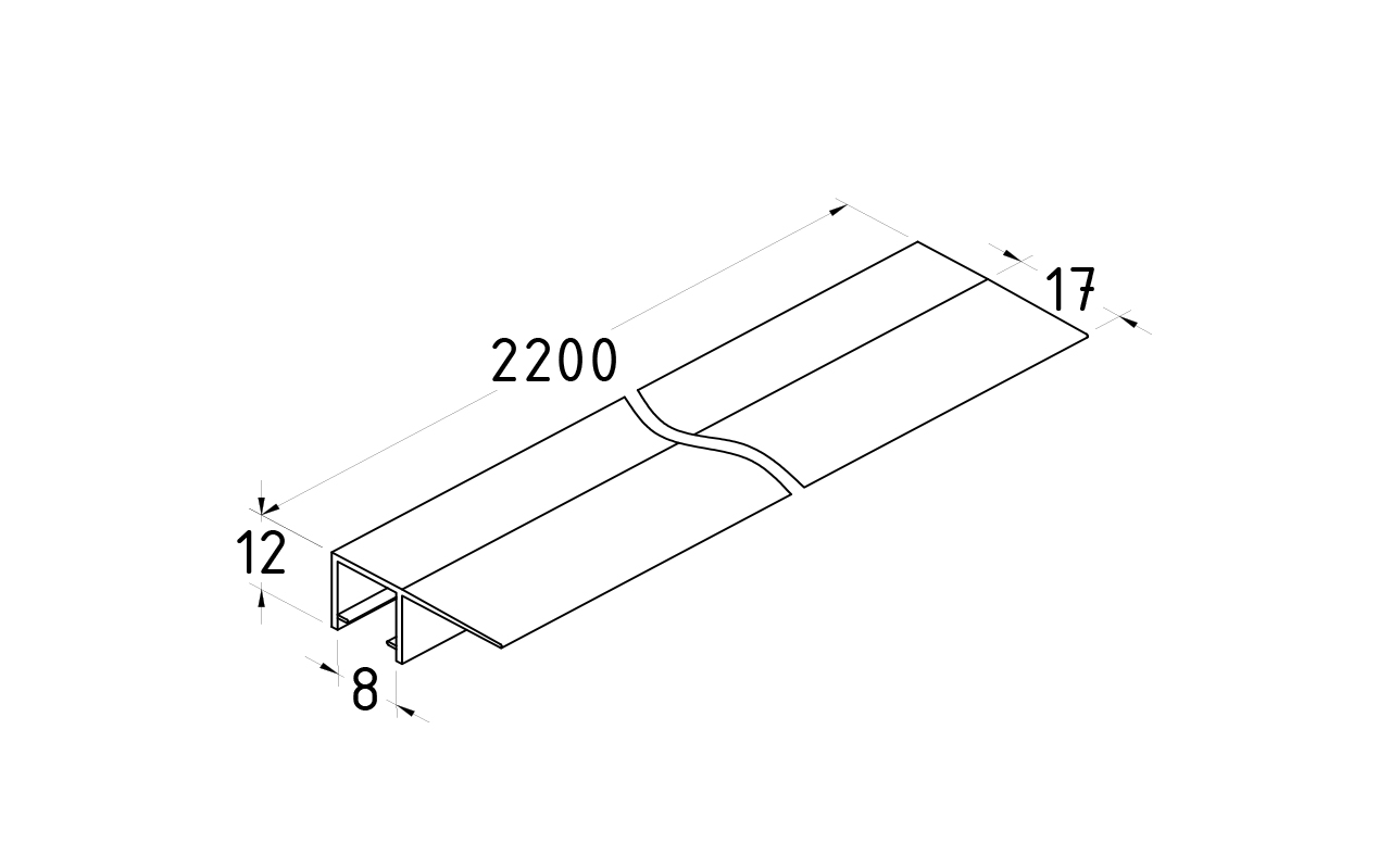 Длина 2200 мм. Монтируется по всему периметру стеклянного листа. Позволяет соединять стеклянные панели между собой.