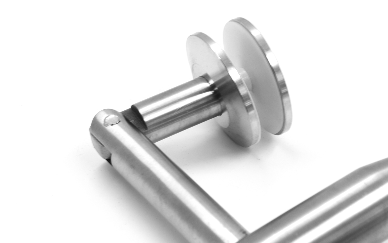 Крепление для двух стекол к ванте, поверхность полированная, марка стали- AISI 304