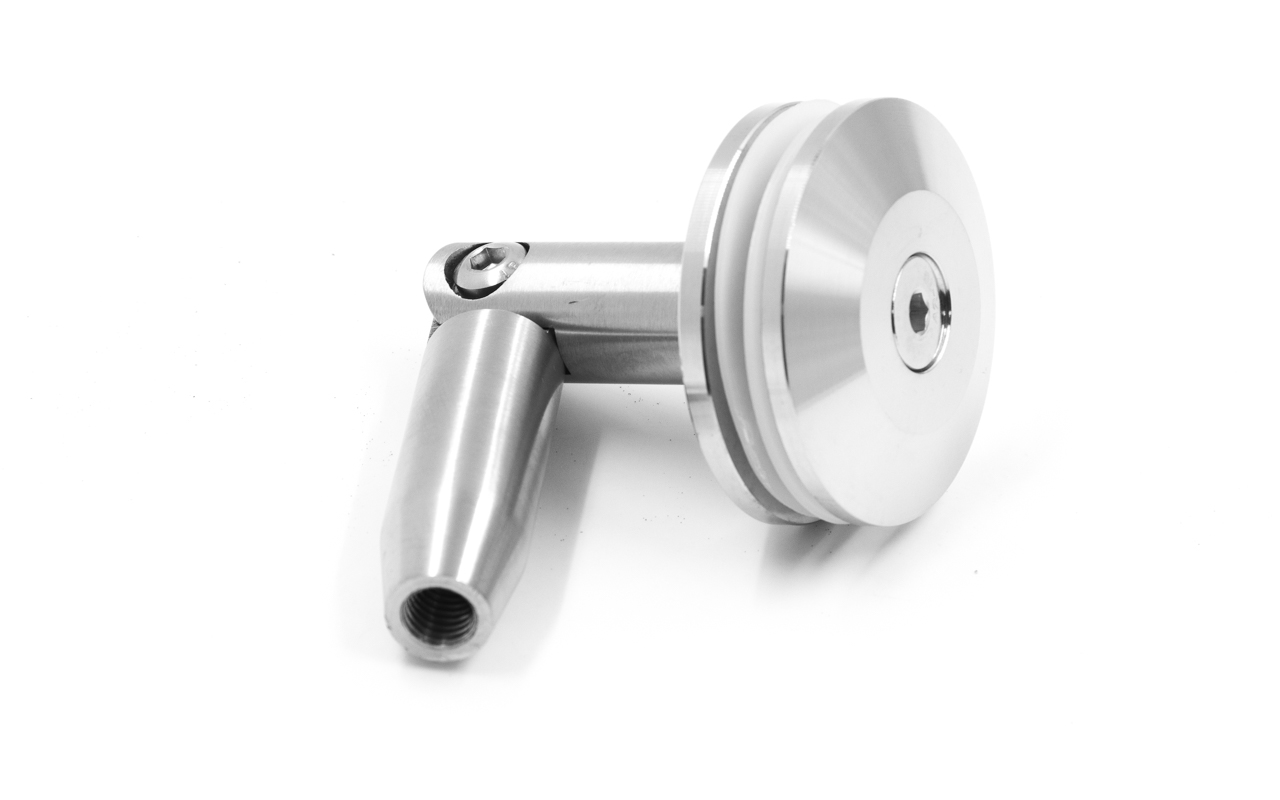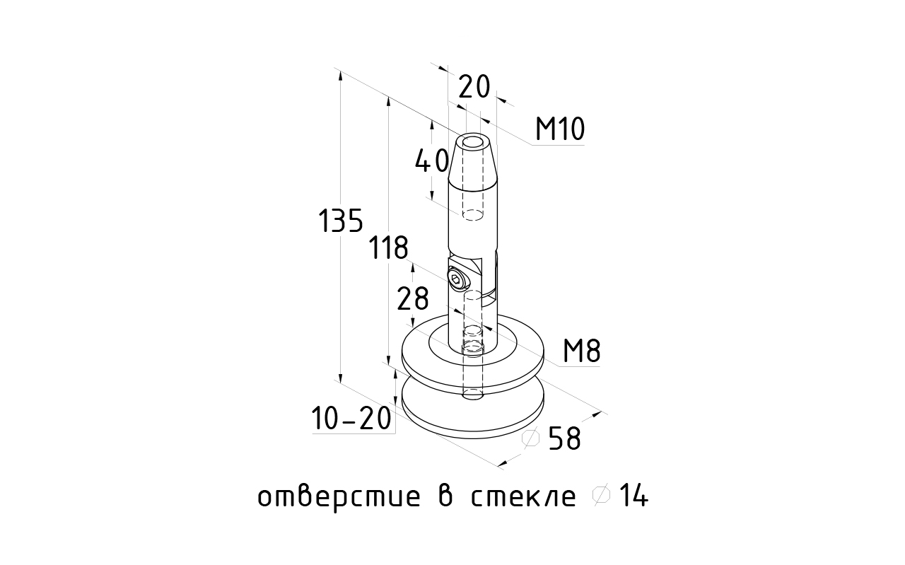 Крепление стекла к тяге для тяги М10 и стекла 10 - 20 мм. Марка стали - AISI-304, поверхность - шлифованное.