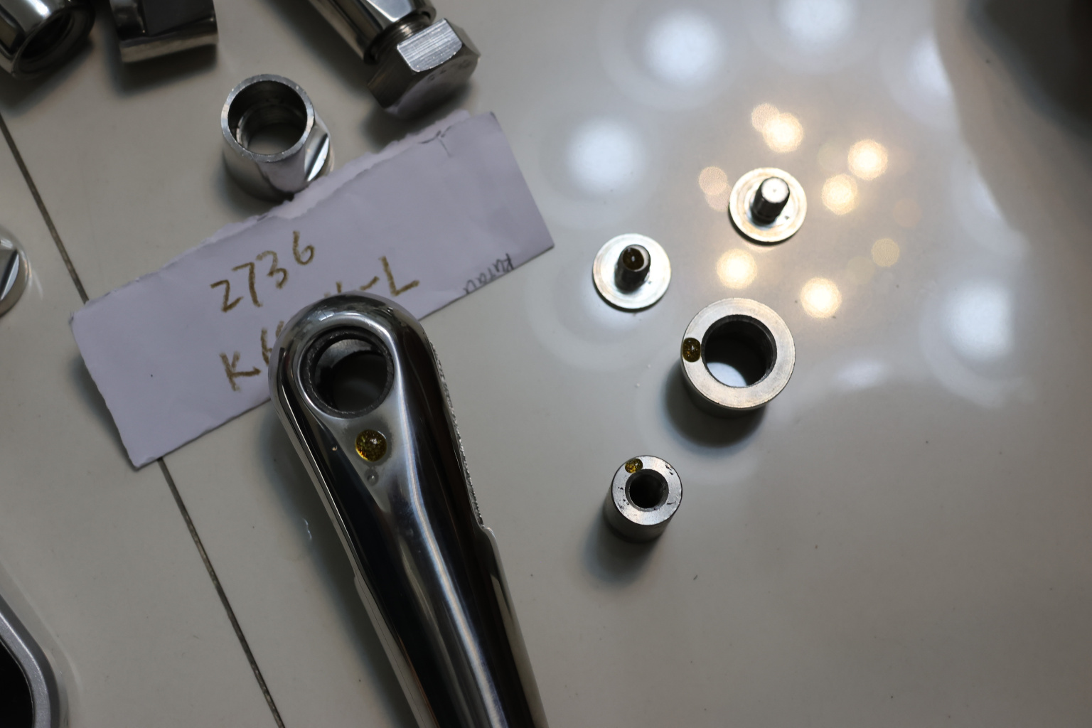 Наконечник монтируется на тягу, затем концом с пазом крепится на серьге либо на крепление со стеной.