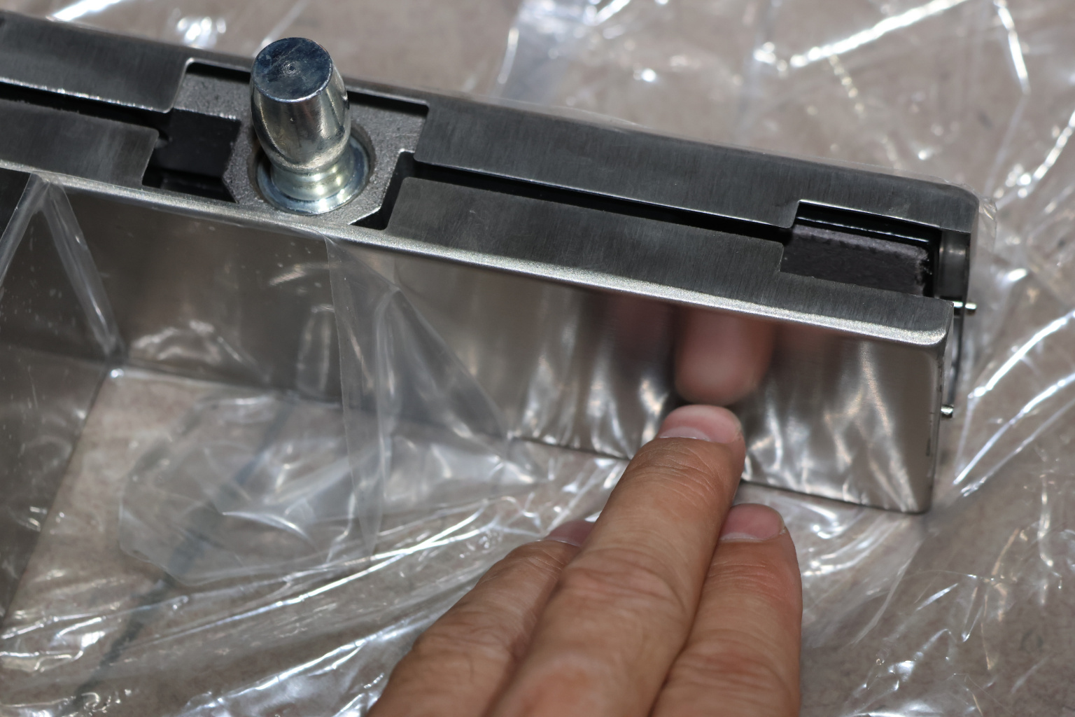 сбоку нажимаем на крепления крышек и снимаем. Отвинчиваем винты, и фиксируем фитинг в подготовленный вырез в стекле. Далее закручиваем и фиксируем обратно крышки.