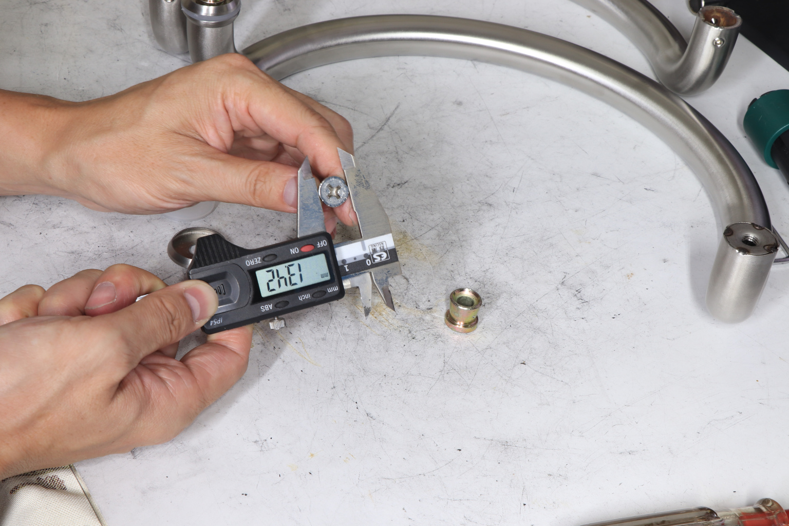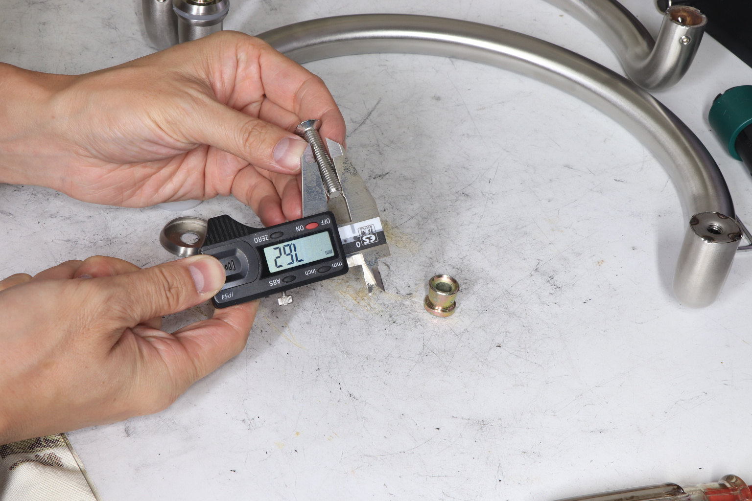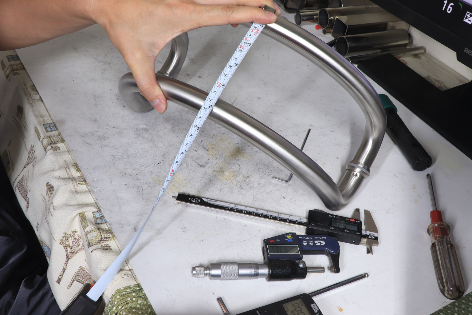 у основания ручки откручиваем с помощью шестигранника винты, делим ручку на две части, в заранее заготовленные отверстия вырезы в стекле 10-12 мм фиксируем первую часть ручки в отверстиях и с обратной стороны ответную часть затягиваем с помощью шестигранника