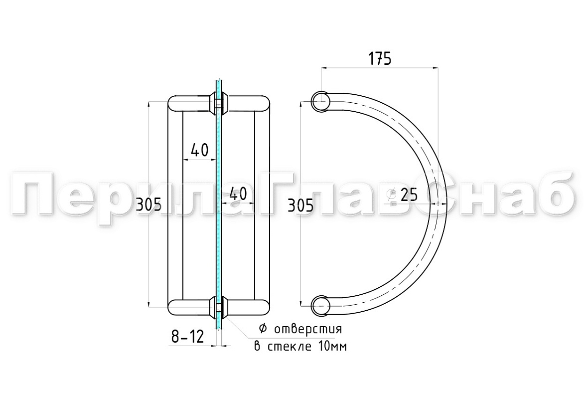Ручка двухсторонняя для стекла 10-12 мм, 25х305, шлифованная
