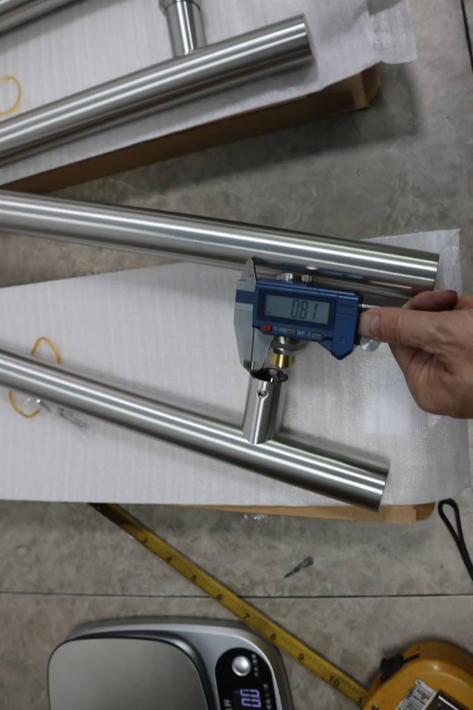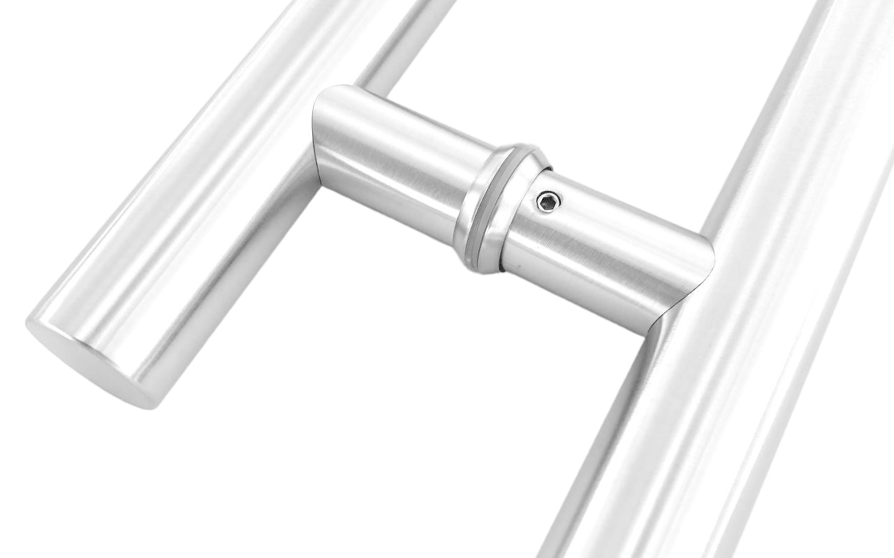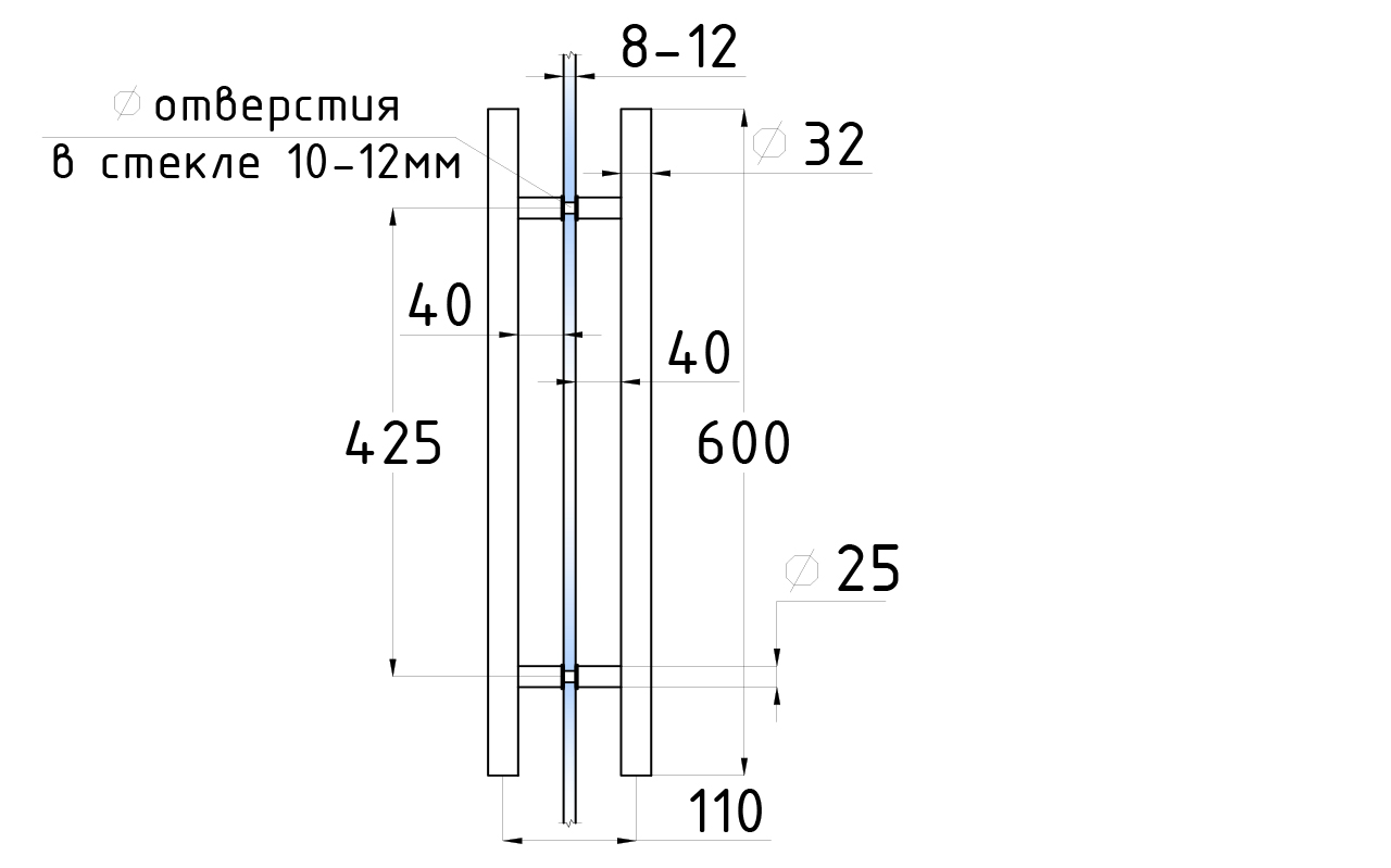 Ручка для стеклянной двери рейлинг двухсторонняя для стекла 8-12 мм, 32х425х600 мм, шлифованная, марка стали- AISI 304