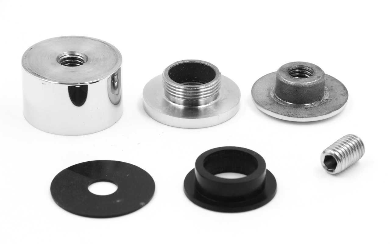 Корпус стеклодержателя приваривают или прикрепляют на саморез, либо штатный винт к стене. А в стекле делают отверстие Ø28 мм под шток стеклодержателя. Толщина стекла варьируется в диапазоне от 8 до 12 мм. Для затягивания гайки рекомендуем использовать ключ k367-2.