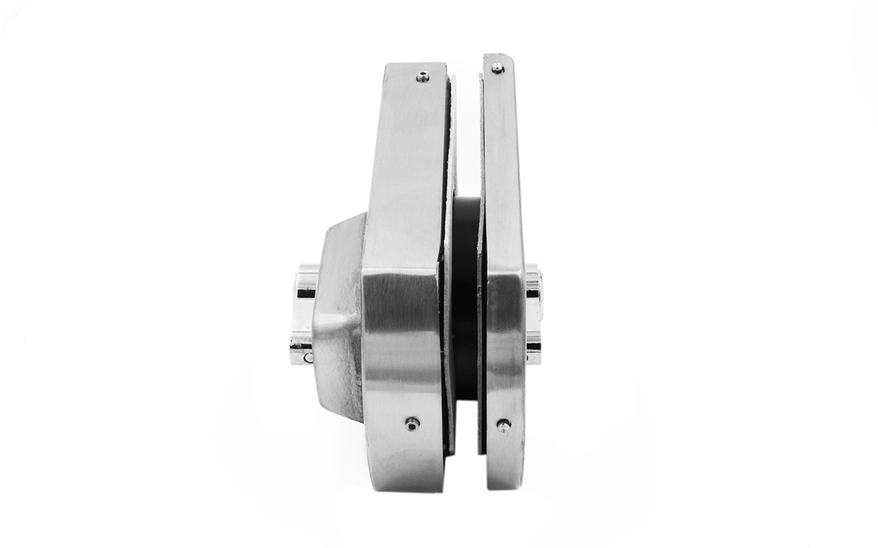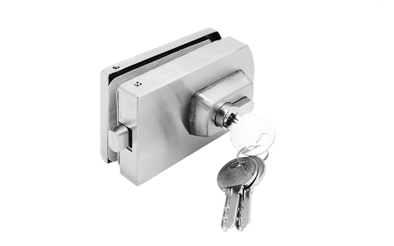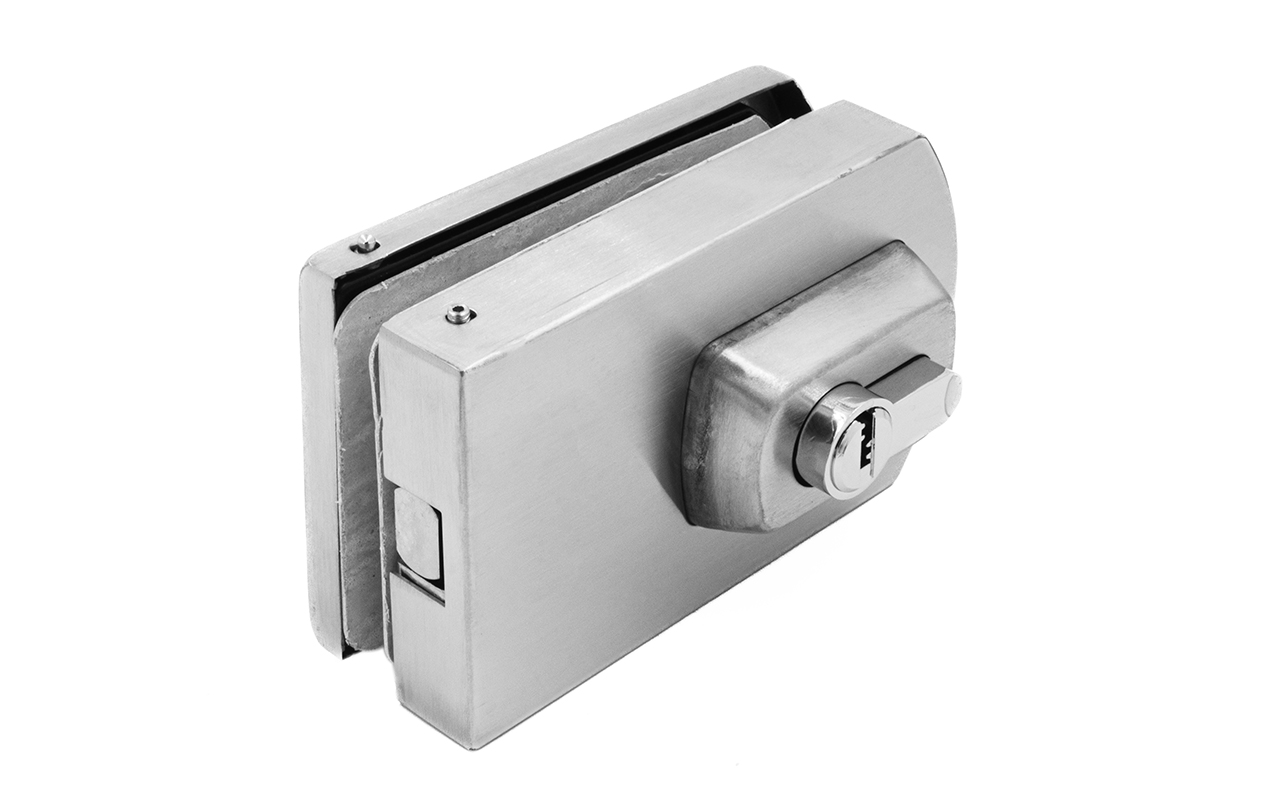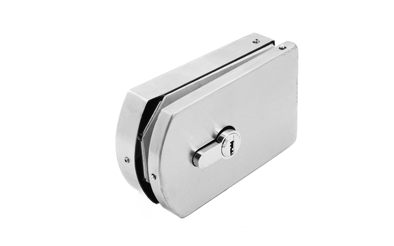 Замок для стеклянной двери вертикальный с ответной частью на стену и пол, шлифованный, вырез 15 t135 SSS