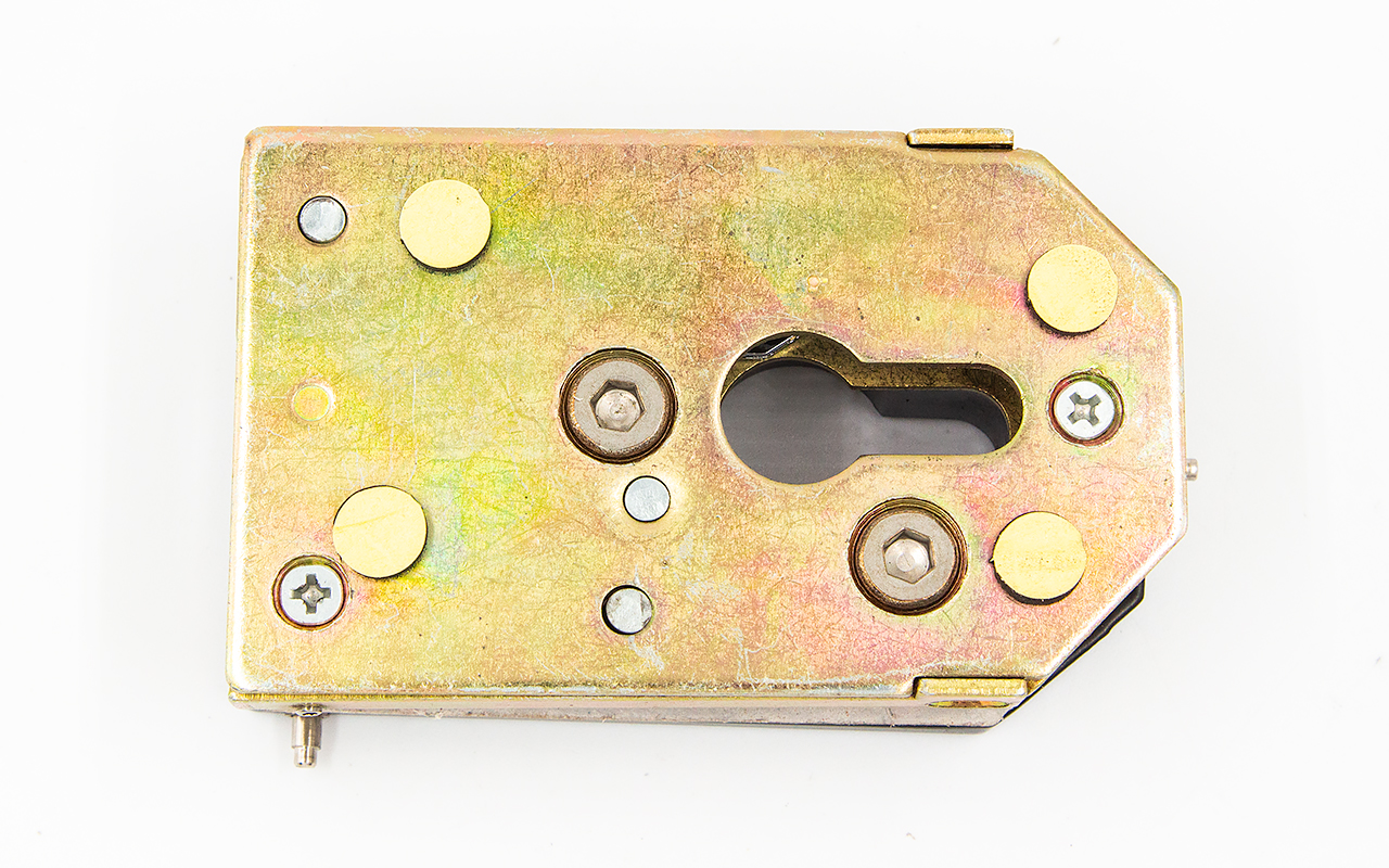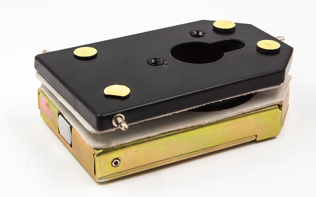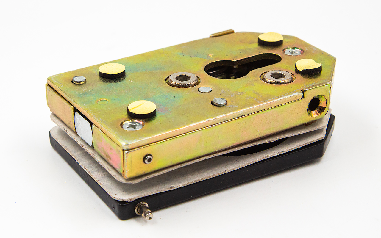 Замок вертикального типа включает в себя ответную часть для пола или стены. Закрывание / открывание возможно с обеих сторон. Изделие выдерживает существенные нагрузки, не боится вибраций, обеспечивает надежную защиту помещения.