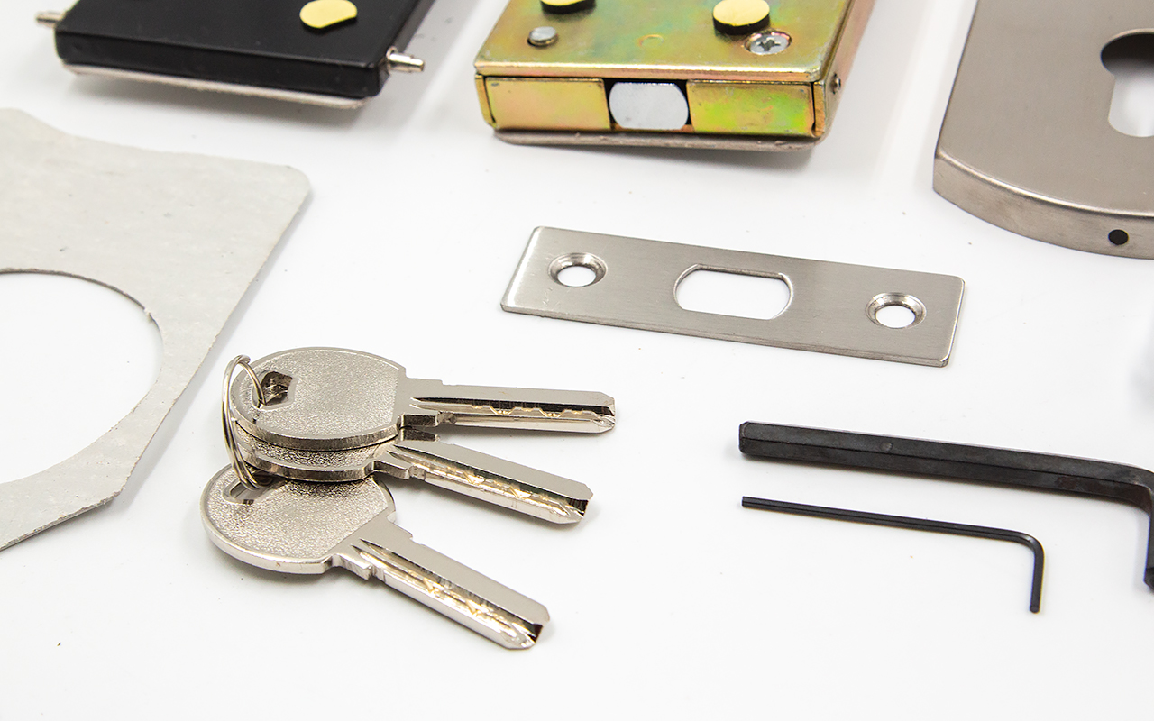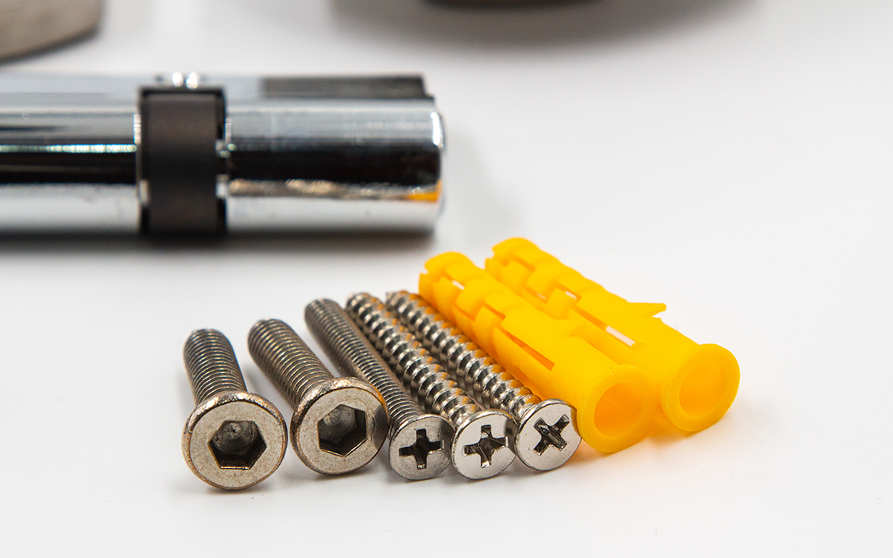 снимаем крышки замка, с помощью шестигранника раскручиваем замок на две части, фиксируем замок в заранее заготовленный вырез стекла. И обратно собираем- закручиваем замок и закрываем крышки