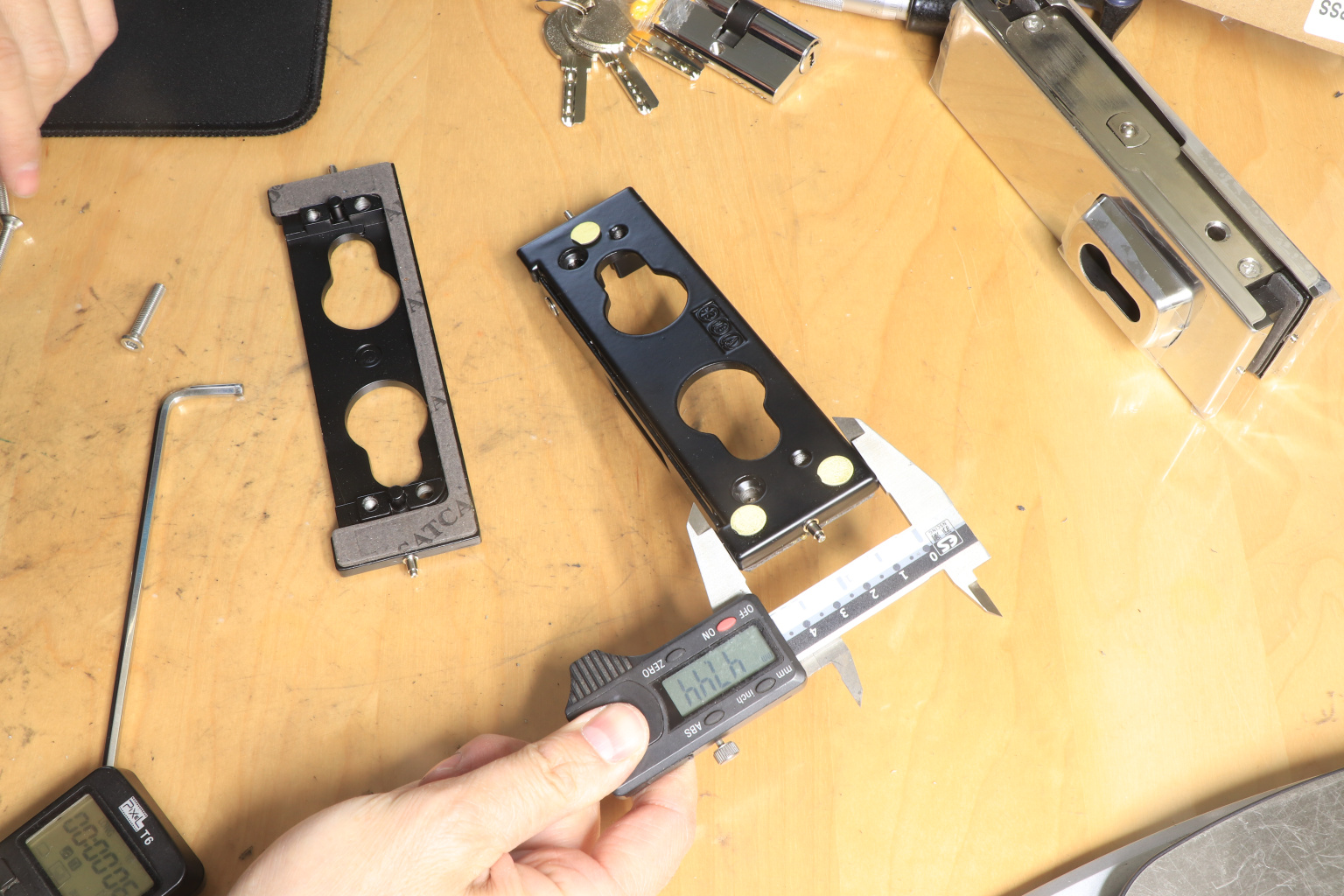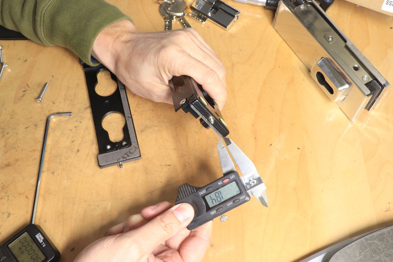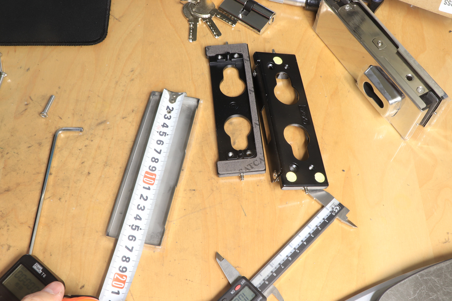 Сбоку нажимаем на крепления крышек и снимаем. Отвинчиваем винты, и фиксируем ответную часть замка в подготовленный вырез в стекле. Далее закручиваем и фиксируем обратно крышки.
