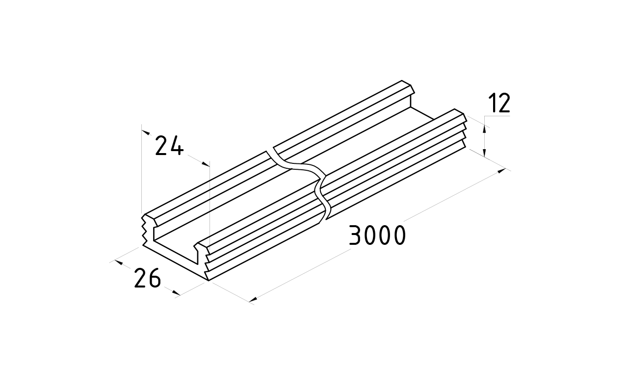 Рассеиватель света для трубы с пазом 24х24, плоский (хлыст 3 метра) k777-3
