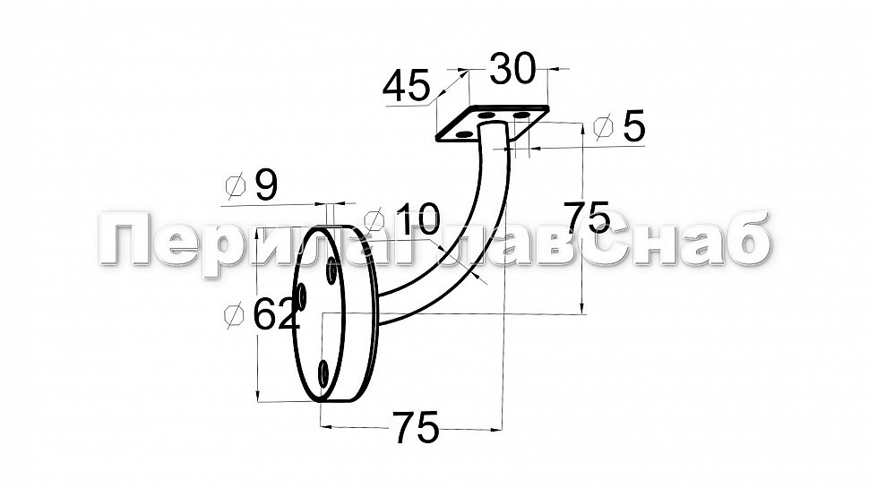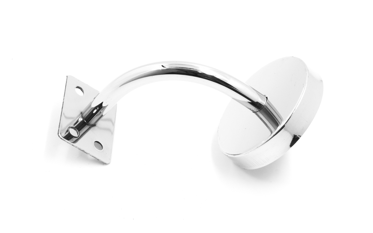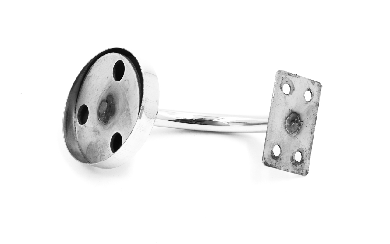 Применяется для бокового крепления нержавеющего поручня под сварку или на саморезы. Ложемент у пристенка под плоскость, так что вы с легкостью можете крепить любую профильную трубу. К стене стальной держатель крепится фланцем на три самореза ⌀3 мм.