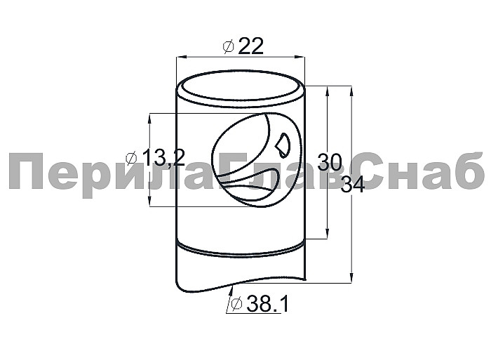 Предназначен для крепления нержавеющего ригеля Ø12 мм, k802-3 (тетивы, струны) к стойке диаметром 38.1 мм ограждения с ригелями.