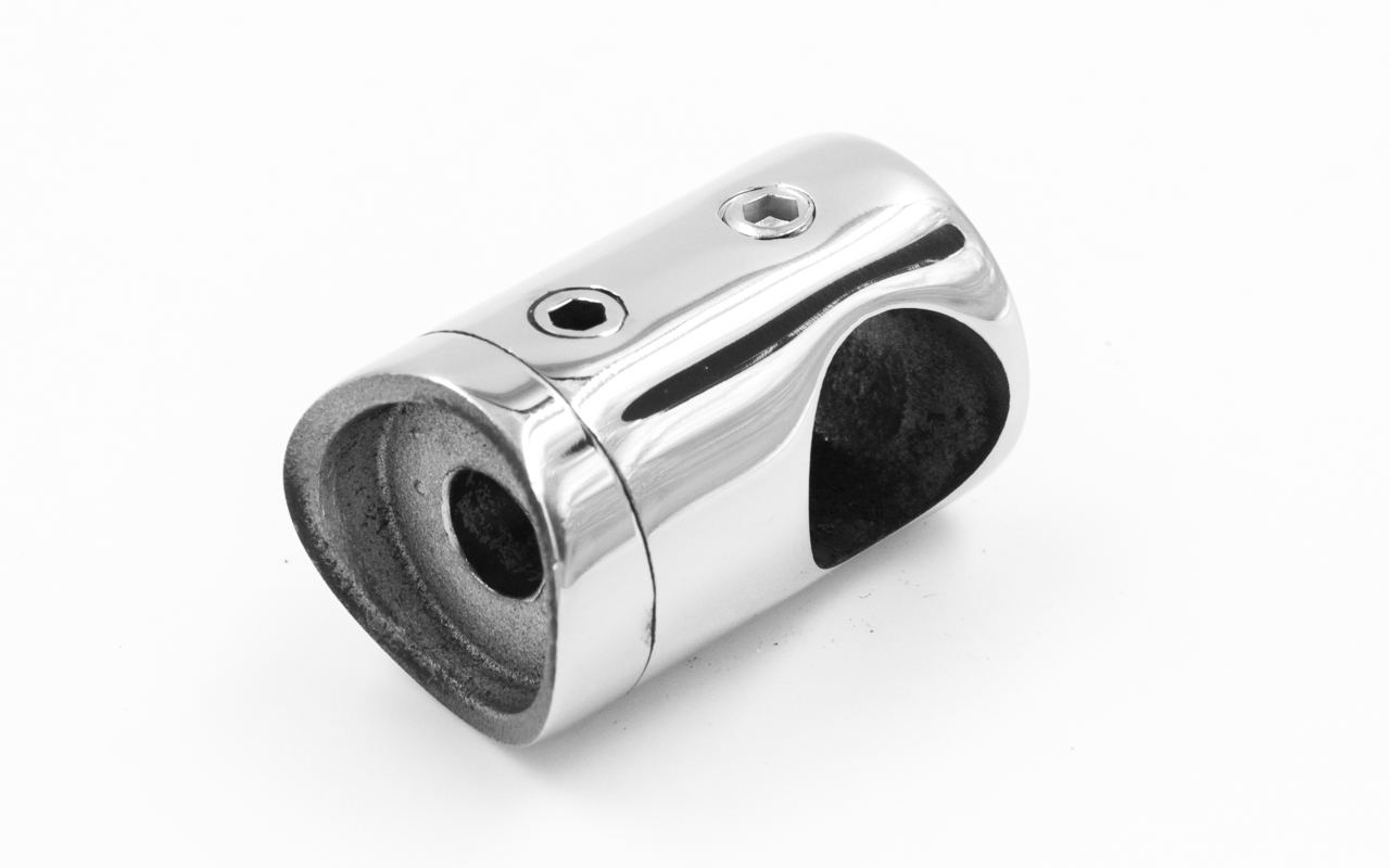 Ригеледержатель на стойку Ø38.1 мм, для ригеля Ø12 мм, Деталь полированная, литая, разборная. Фиксация ригеля с помощью шестигранника