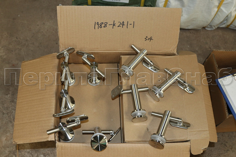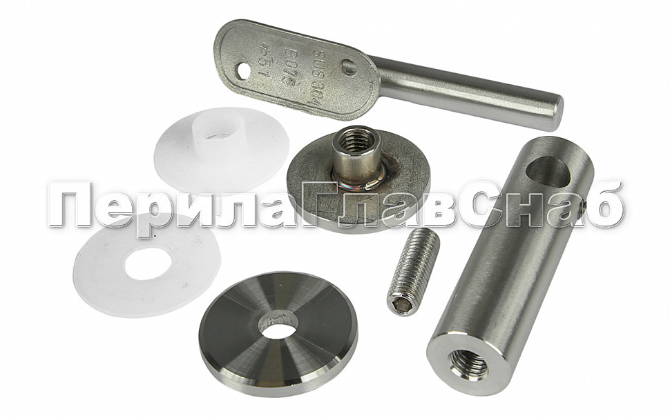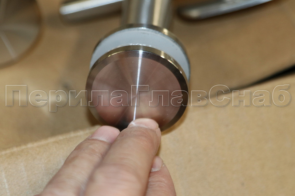 Стеклодержатель Ø50х10х18, шпилька М16х205 мм, для стекла 8-40 мм, AISI (201), с возможностью регулировки выноса до 65 мм, для торцевого крепления стекла, полированный, литой k277-3 купить в Тюмени