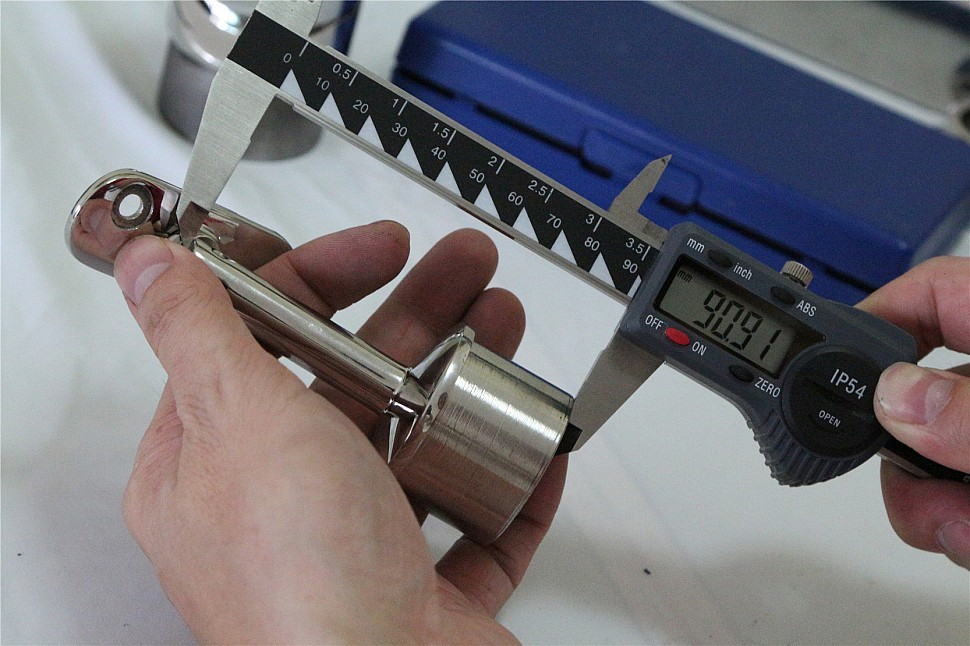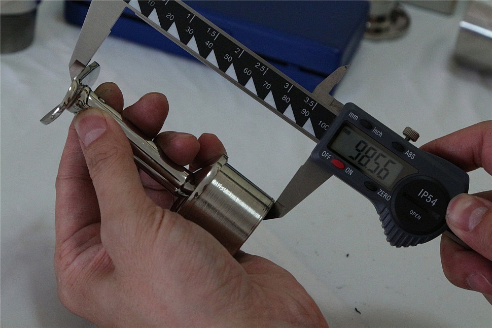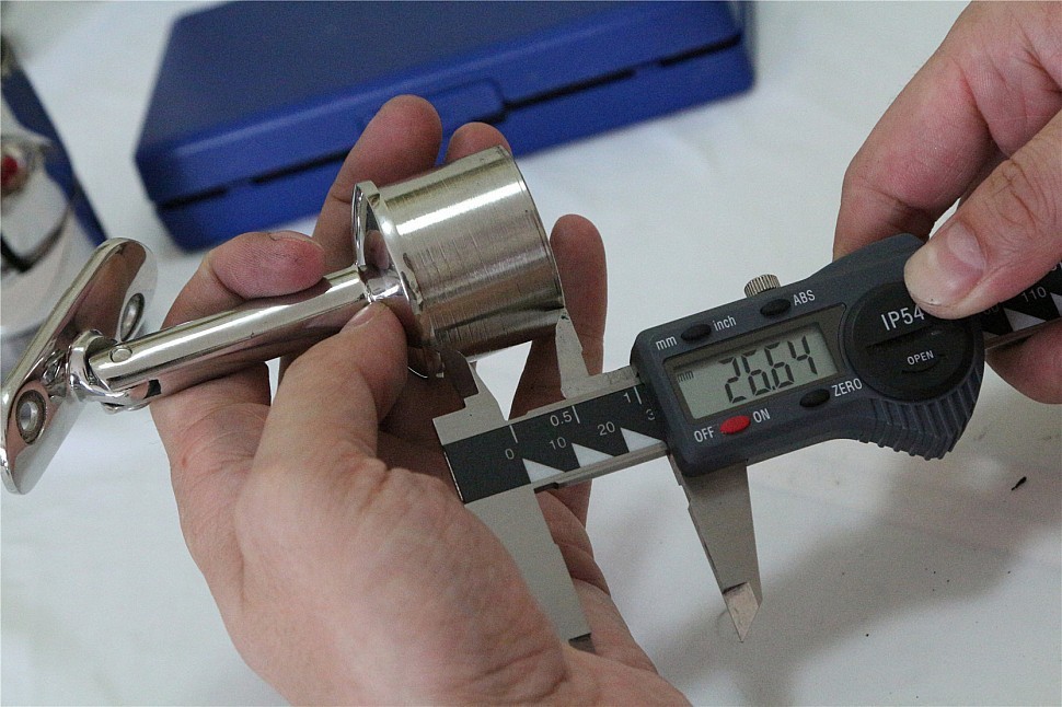 Наконечник палец на стойку Ø42.4х1.5 мм, с регулируемым ложементом под поручень Ø50.8 мм. Деталь литая, полированная, нержавеющая. марка стали - AISI 304