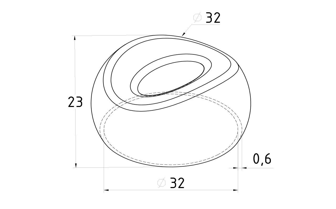Наконечник стойки штампованный, под 90°, Ø32 мм х 0,6 мм, для поручня от 32 до 50.8 мм, марка стали - AISI 201