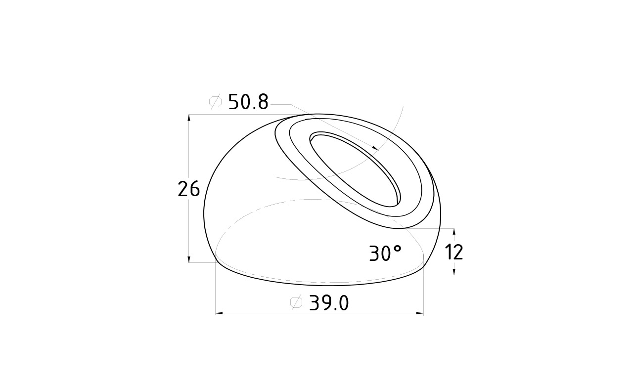Наконечник штампованный (СПС) косой 30° на трубу Ø38.1 мм, для поручня Ø50.8 мм, полированный, нержавеющий, AISI 304, 600Grit, k016-3