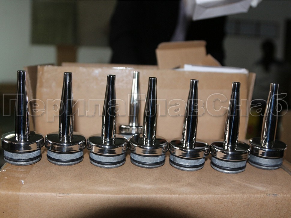 Наконечник палец (солдатик) с системой фиксации из алюминия в стойке диаметром Ø38.1 мм. Деталь полированная, нержавеющая, литая. Марка стали детали - AISI 304.