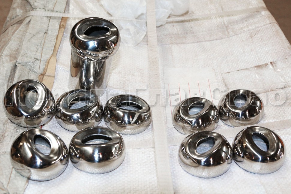 Наконечник штампованный (СПС) прямой 90° на трубу диаметром 50.8 мм, для поручня диаметром 38.1-50.8 мм, полированный, нержавеющий. Марка стали - AISI 304
