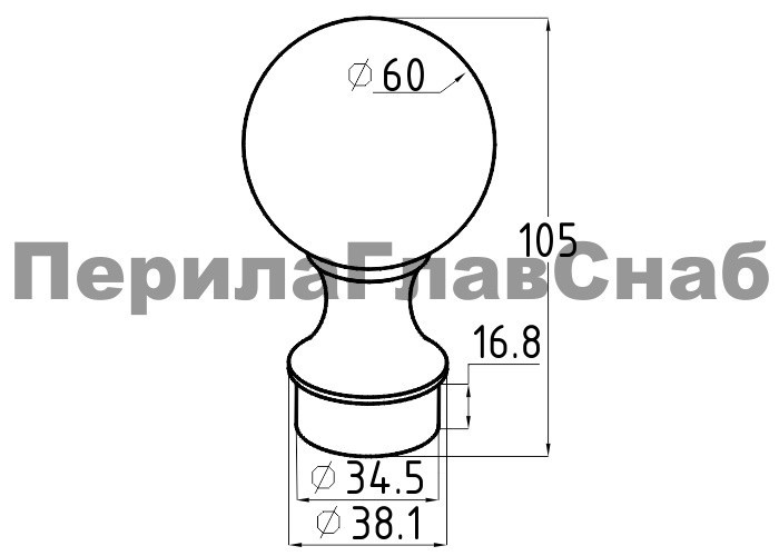 Наконечник шар на стойку Ø38.1 мм, литой, полированный, AISI 304 k070 купить в Тюмени