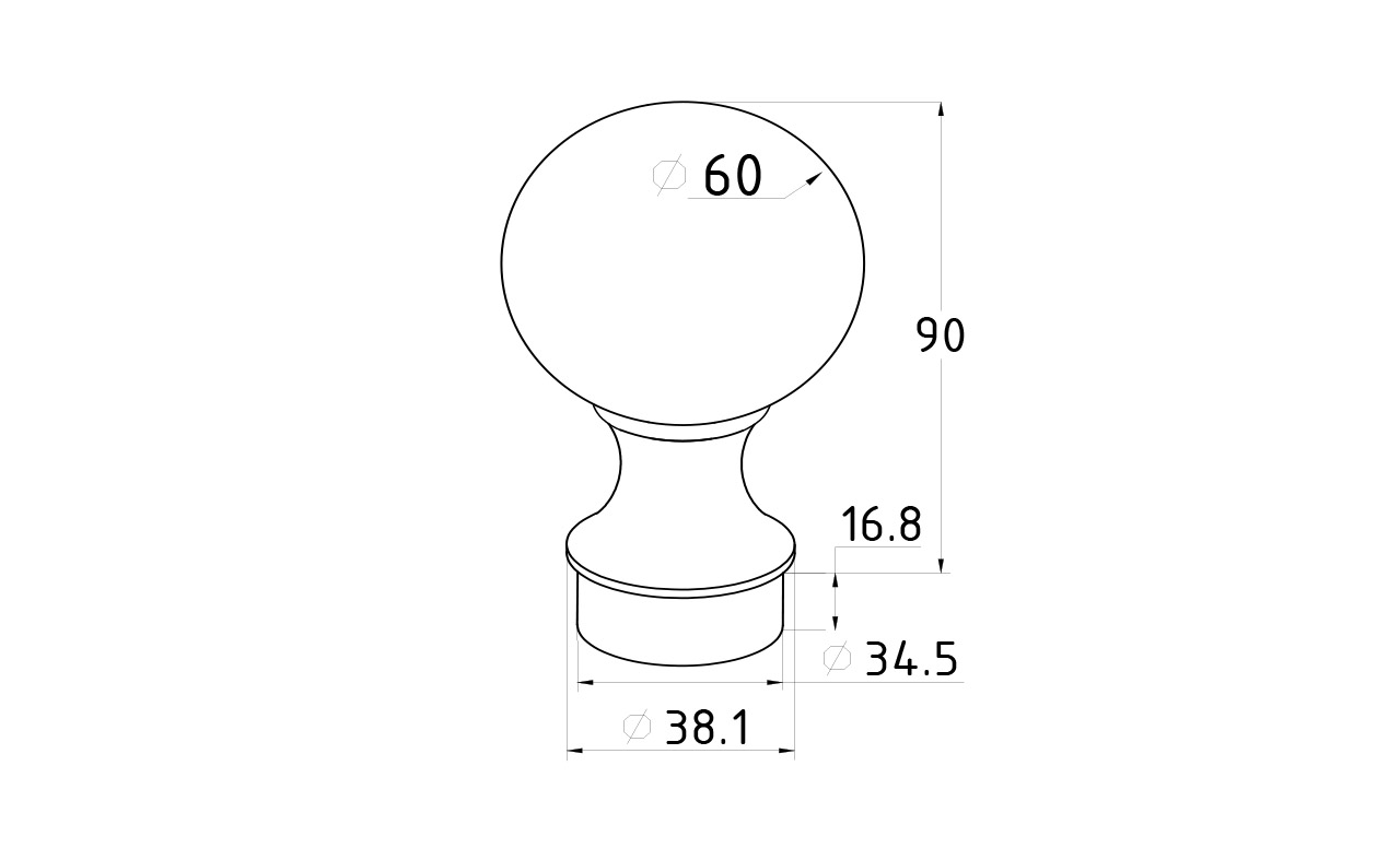 Наконечник шар на стойку Ø38.1 мм, литой, полированный, AISI 304 k070