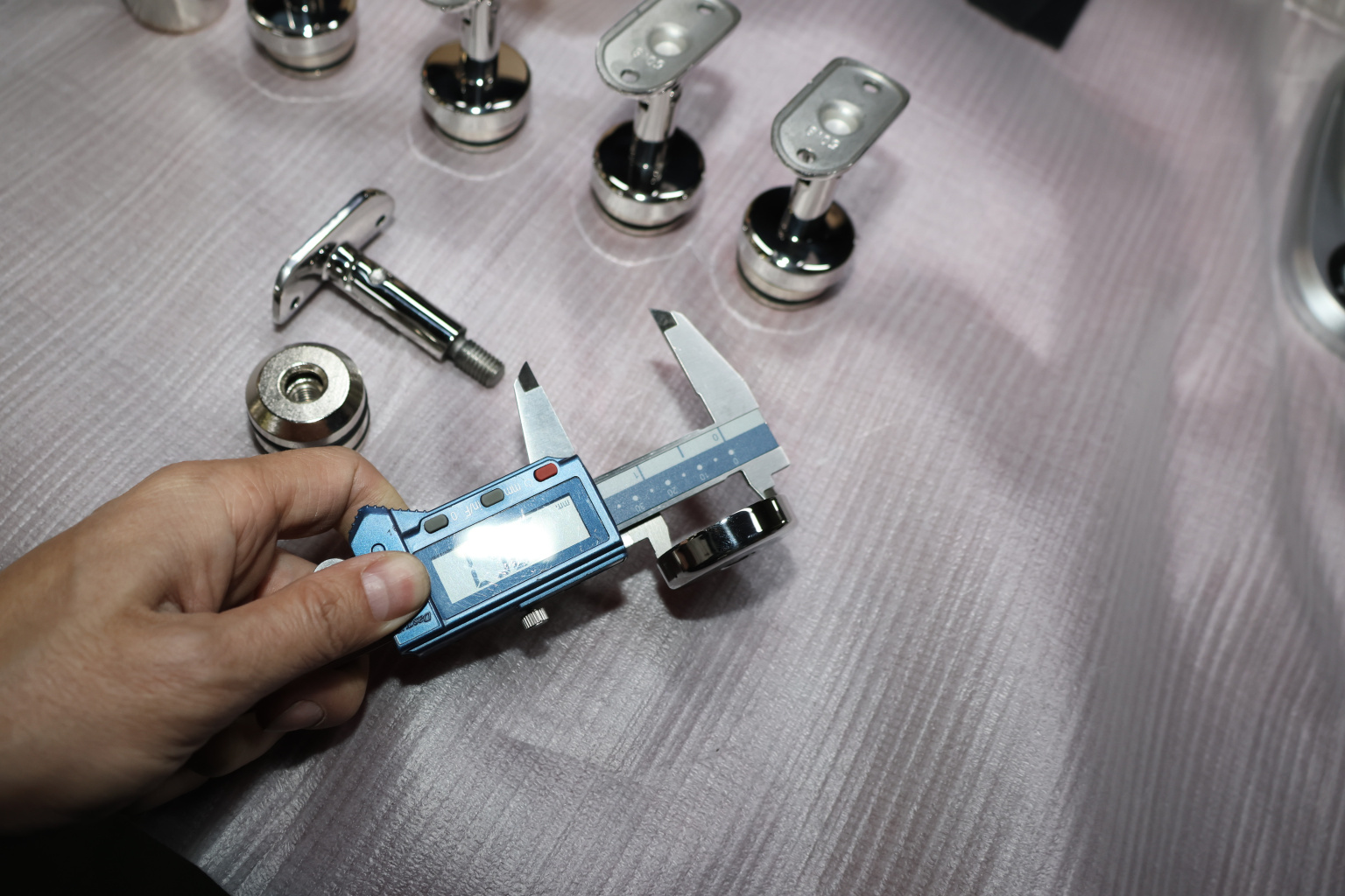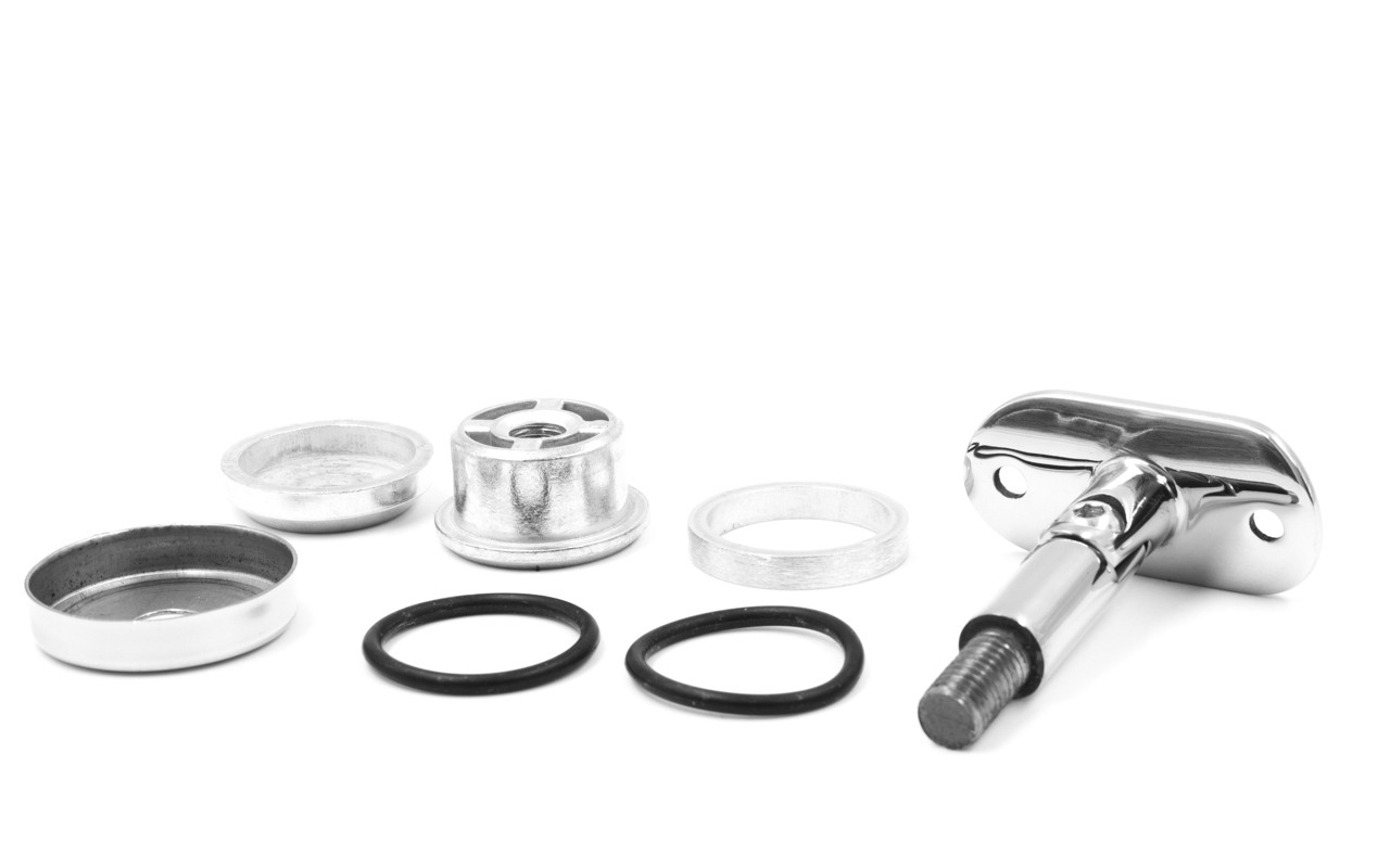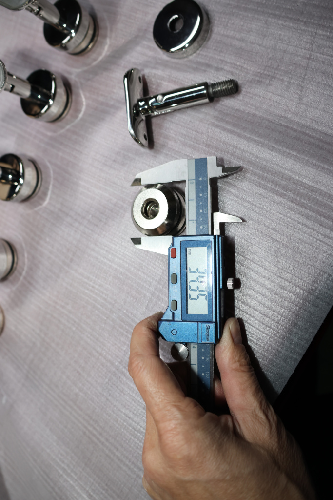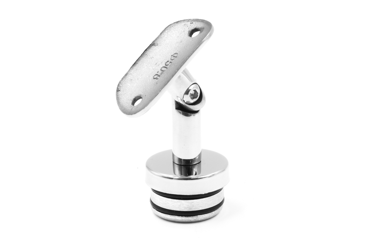Наконечник-"палец" с алюминиевой системой фиксации на стойке Ø38.1х1.5 мм. Ложемент под поручень Ø50.8 мм, регулируемый. Деталь полированная, литая, нержавеющая. Марка стали - AISI 304