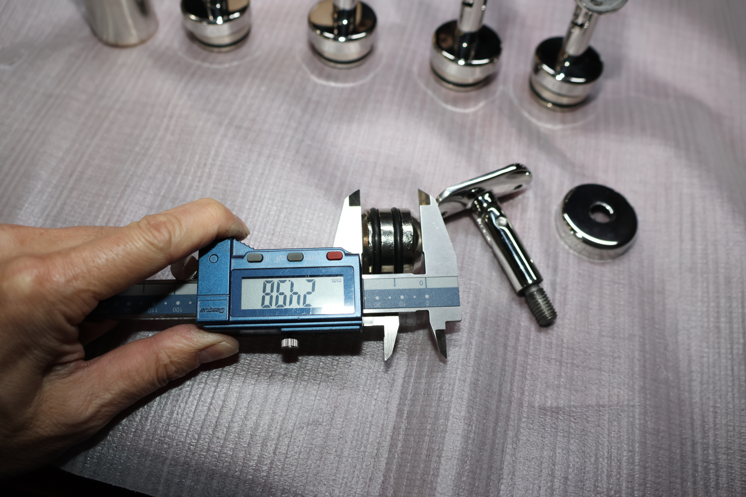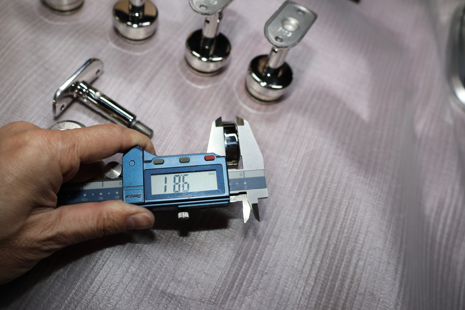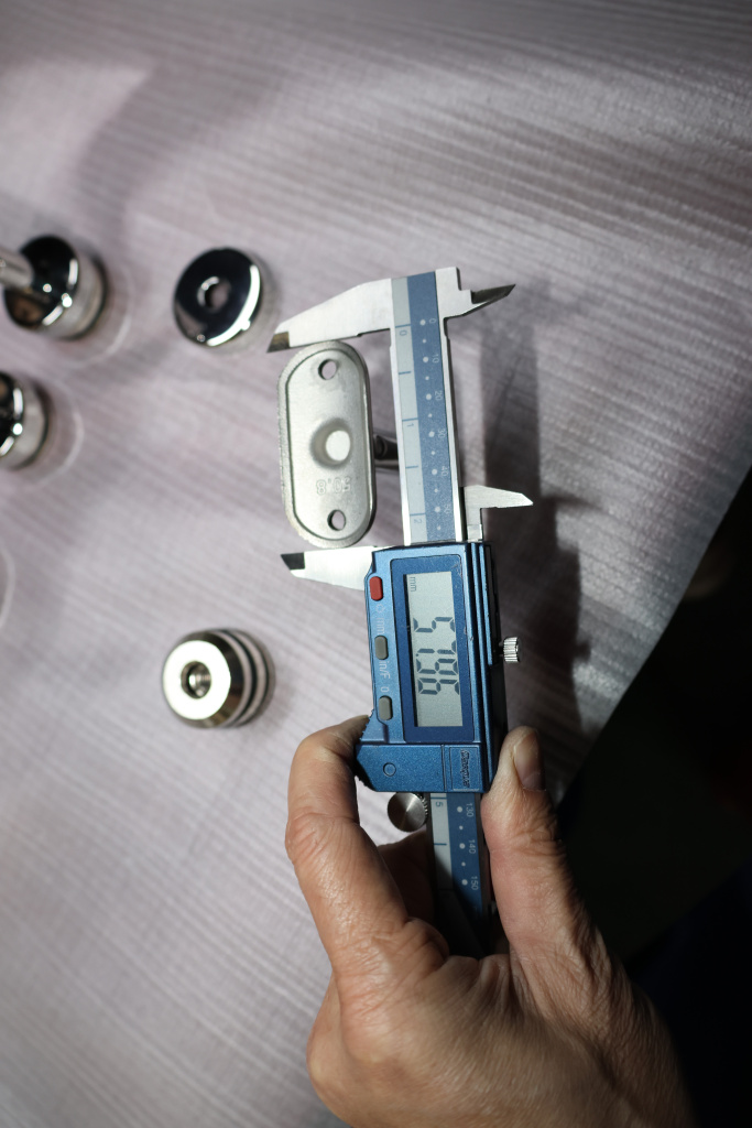 Наконечник-"палец" с алюминиевой системой фиксации на стойке Ø38.1х1.5 мм. Ложемент под поручень Ø50.8 мм, регулируемый. Деталь полированная, литая, нержавеющая. Марка стали - AISI 304