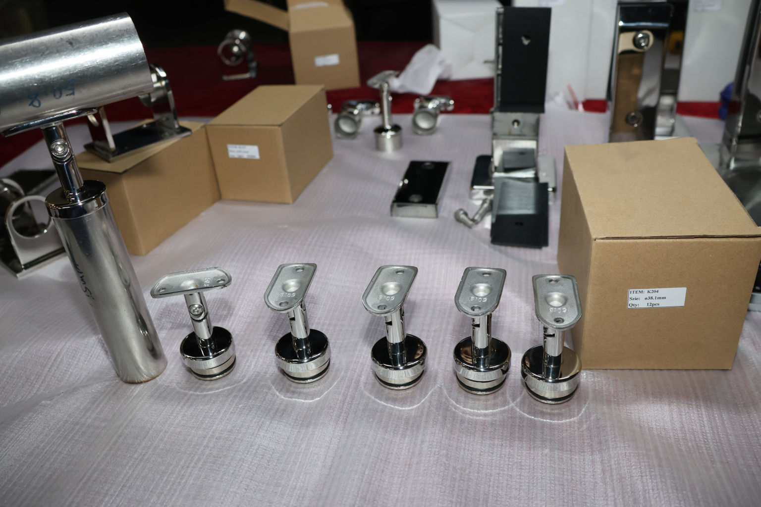 Наконечник палец с алюминиевой системой фиксации на стойке Ø38.1х1.5 мм, регулируемым ложементом под поручень Ø50.8 мм, полированный, литой, нержавеющий (AISI 304) k204
