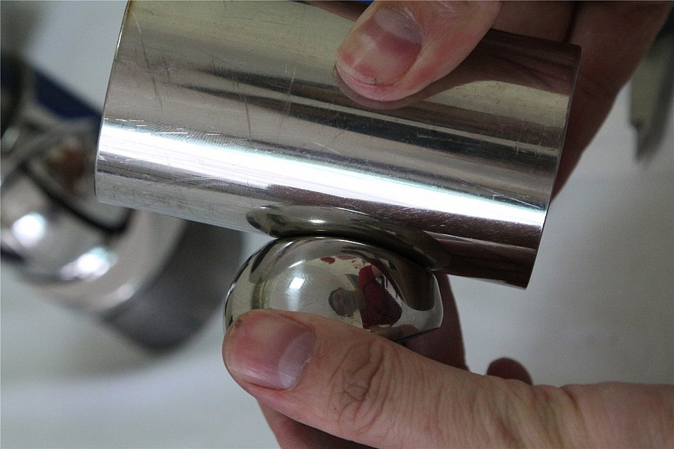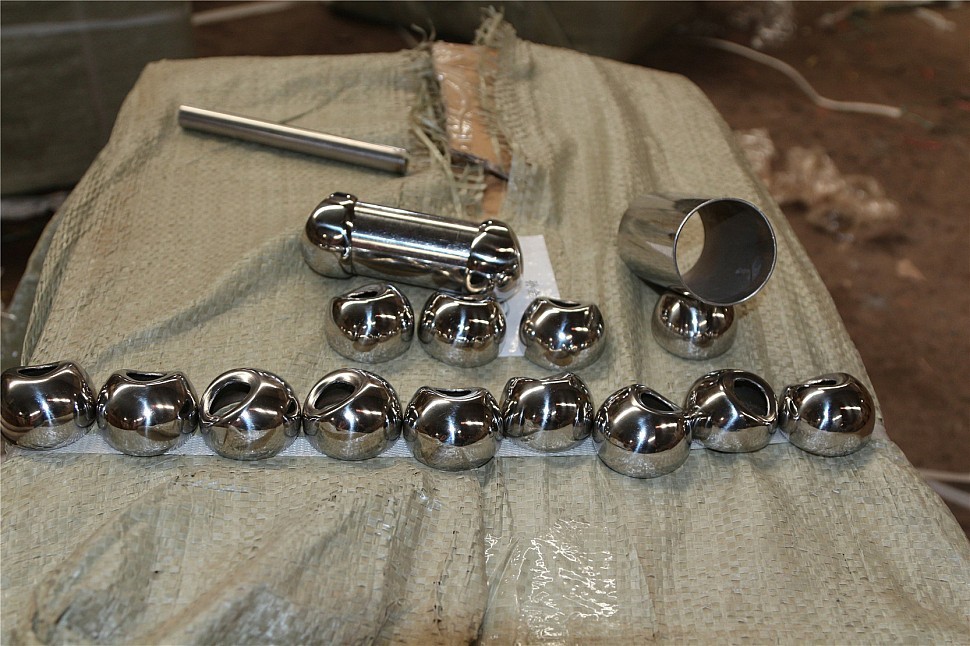Наконечники очень ровно обхватывают трубу стойки и так же точно придерживают трубу поручня на ложе сверху. Таким образом, достаточно пары касаний электродом и наконечник уже намертво держится на стойке, а после ещё двух касаний поручень так же точно, а главное прочно соединен со стойкой.