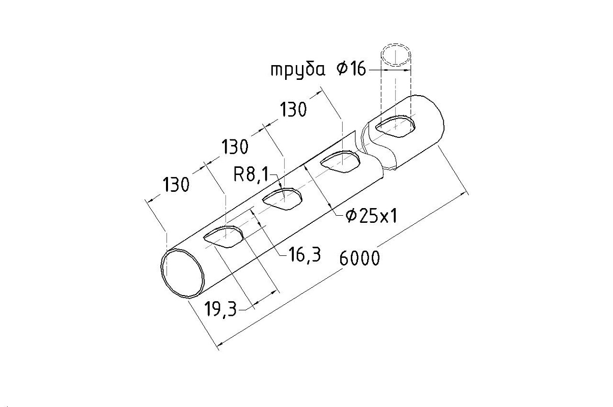 Труба AISI 201 25х1х6000, с перфорацией под Ø16, 90°, GRIT 600 831-1